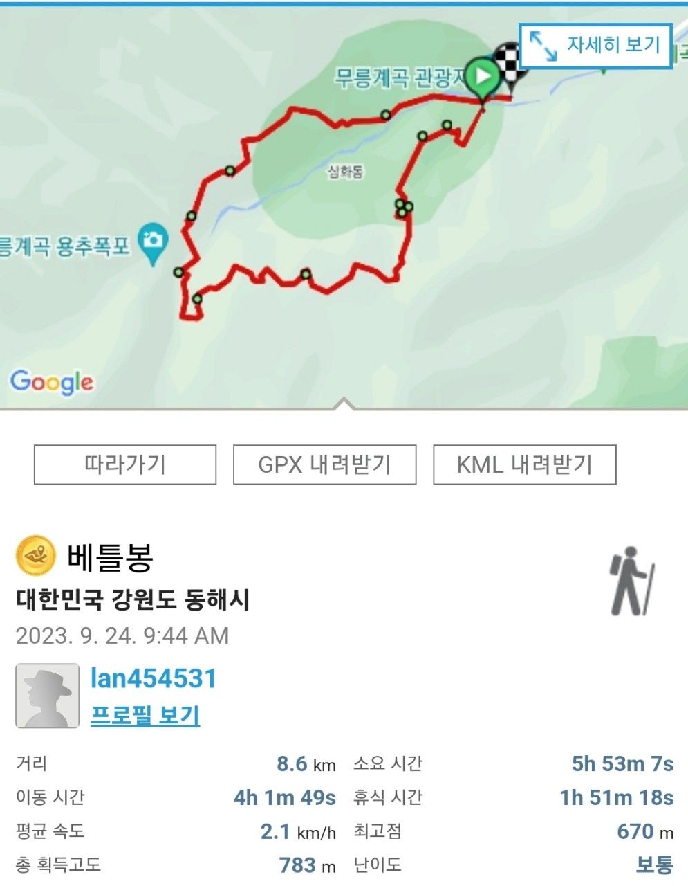 하산 완료하였습니다.
