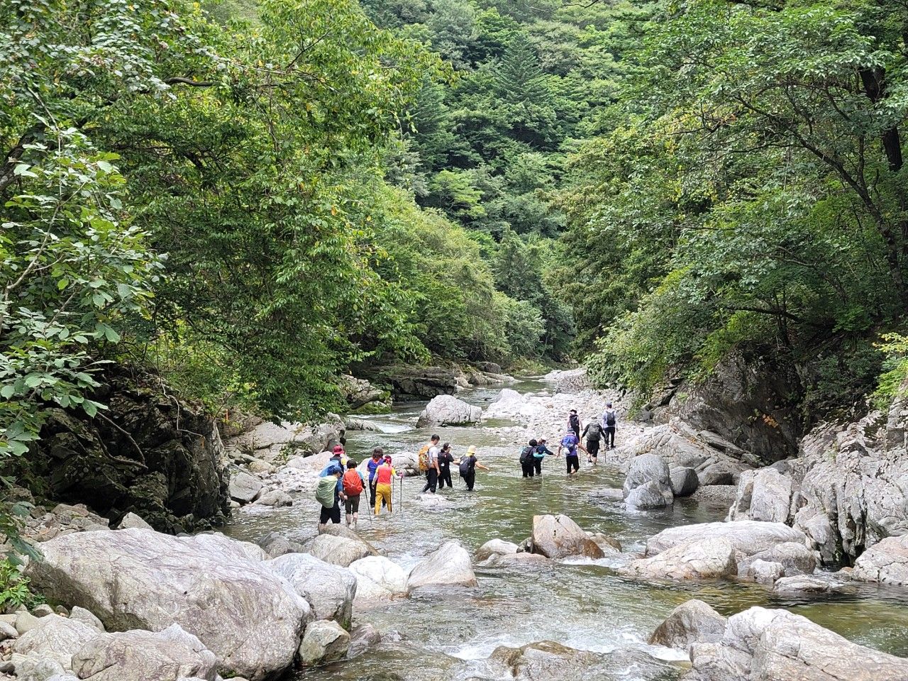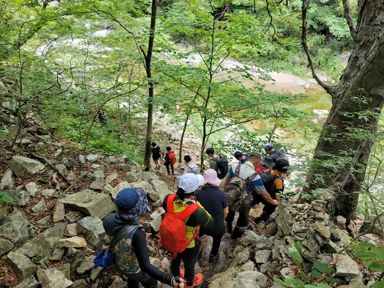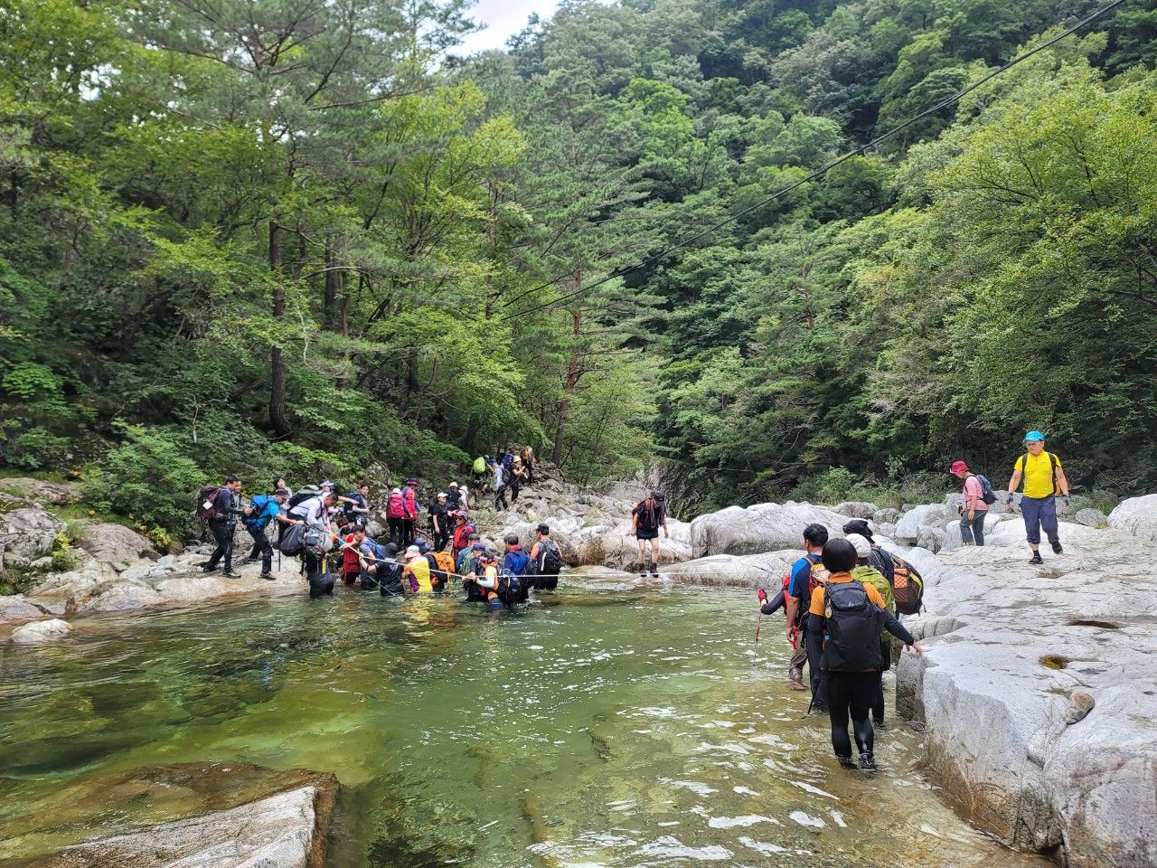 물길 따라 거침없이 걸어가는 산악회 회원들~~~