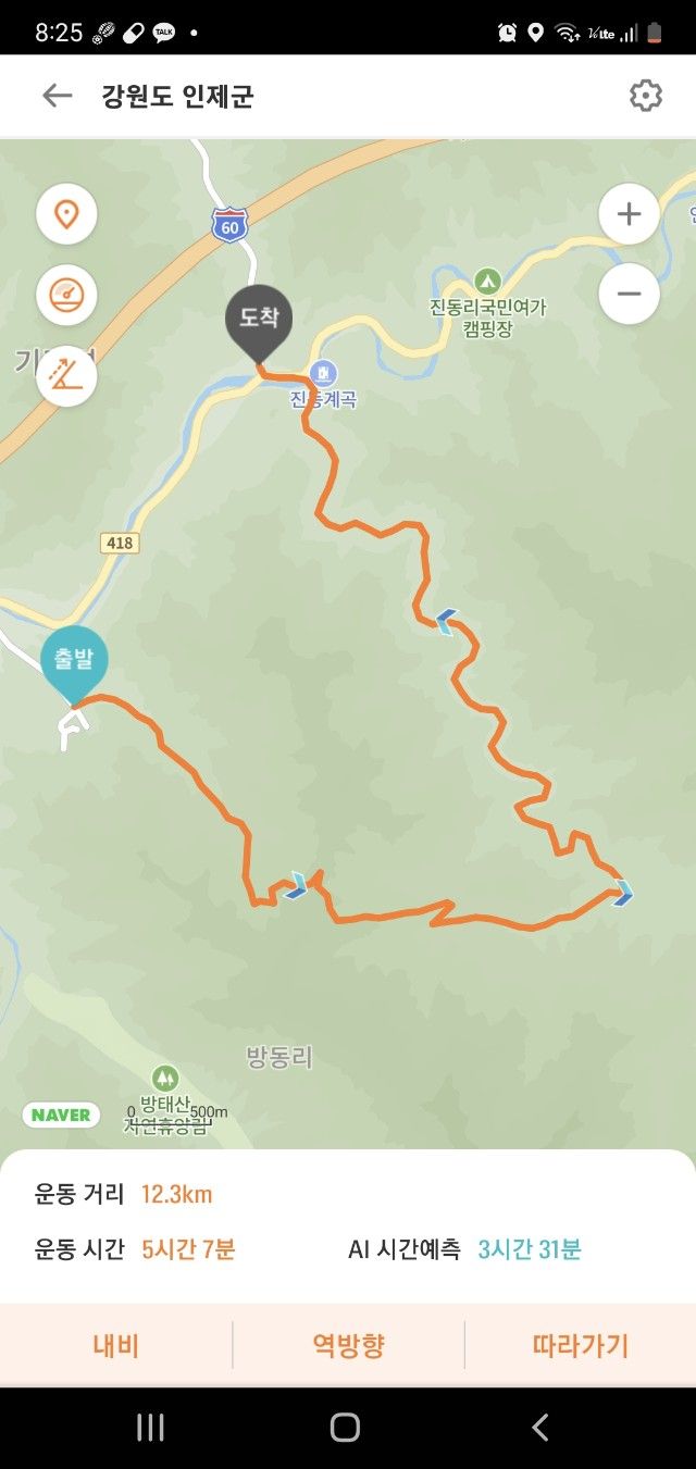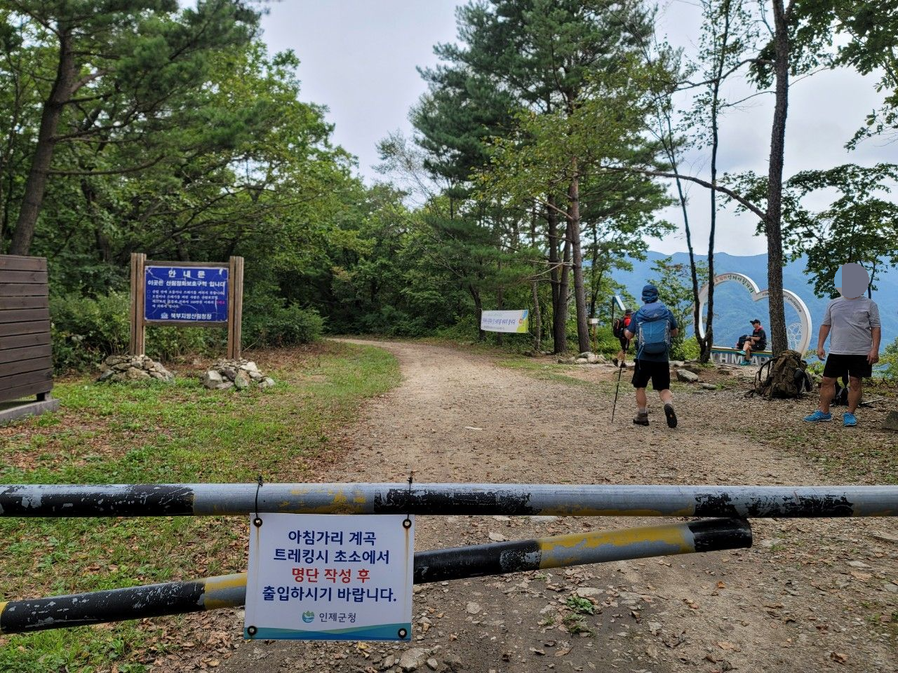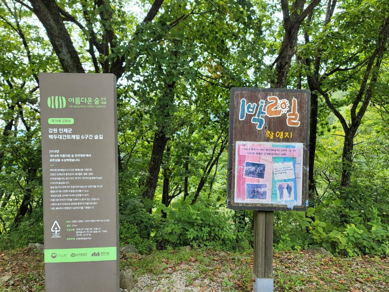 트레킹 안내판 옆길로 진행했습니다. 방태산 아침가리계곡은 휴대폰 불통구간도 있으니 참고하시기 바랍니다.