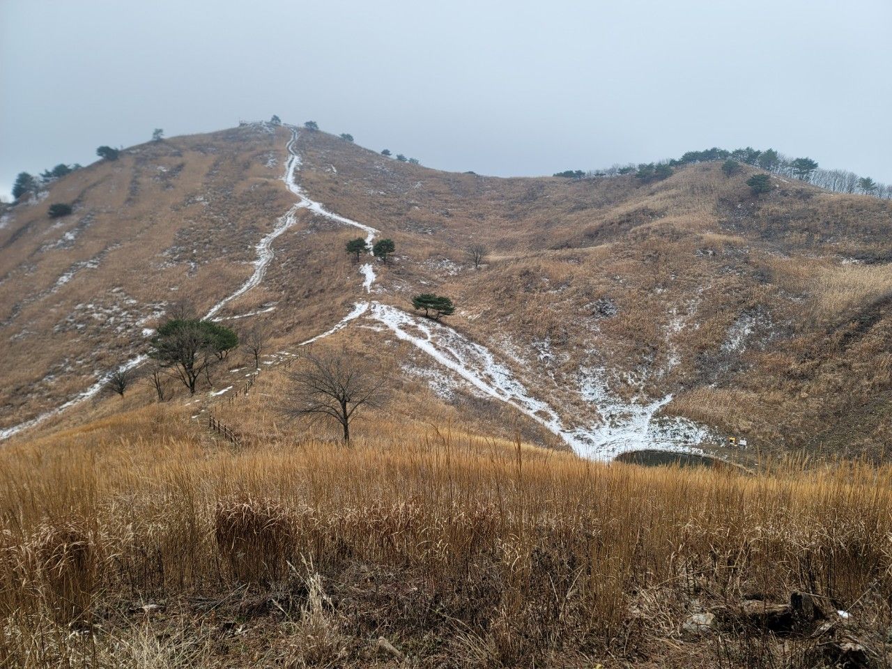 🔎 억새산으로 불릴 만큼 온통 억새로 덮여있는 산으로 유명합니다. 7부 능선까지는 관목과 잡목이 우겨지지만 정상부근에는 나무가 거의 없습니다. 등산로는 잘 정비되어 있어 많은 사람들이 찾는 곳이기도 합니다.