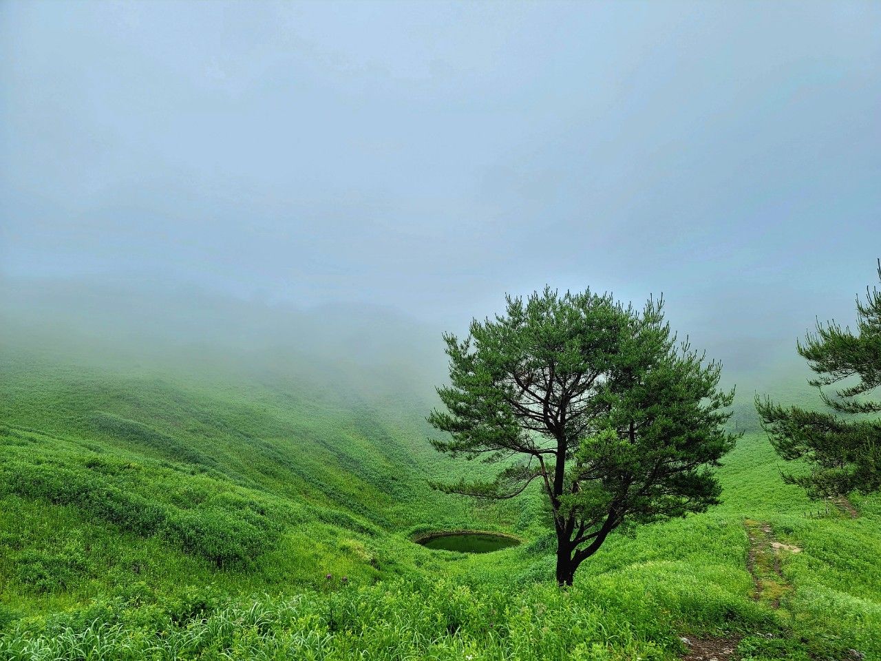 다시 짙어진 안개로 돌리네 지형 연못은 사라지고 보이지 않네요~