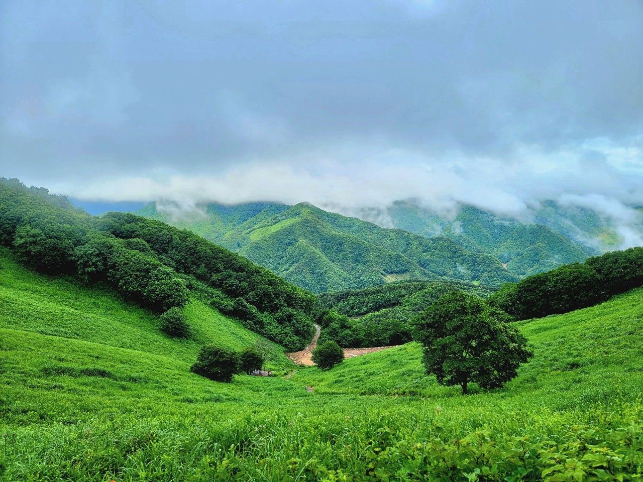 잠시 안개 걷히니 주변 산새가 시원하게 보였답니다.