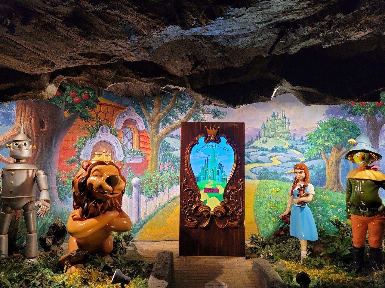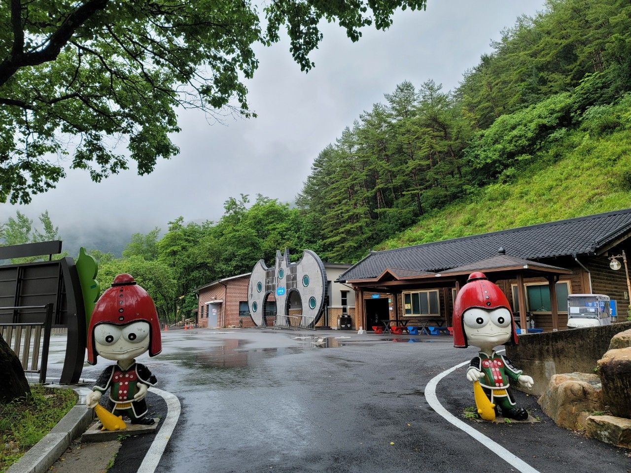 주차장 쪽에서 바라보니 나무를 이용한 화암동굴도 정성 가득~~ 너머에 보이는 도깨비들이 귀여운 표정으로 인사해 주는 것 같습니다.