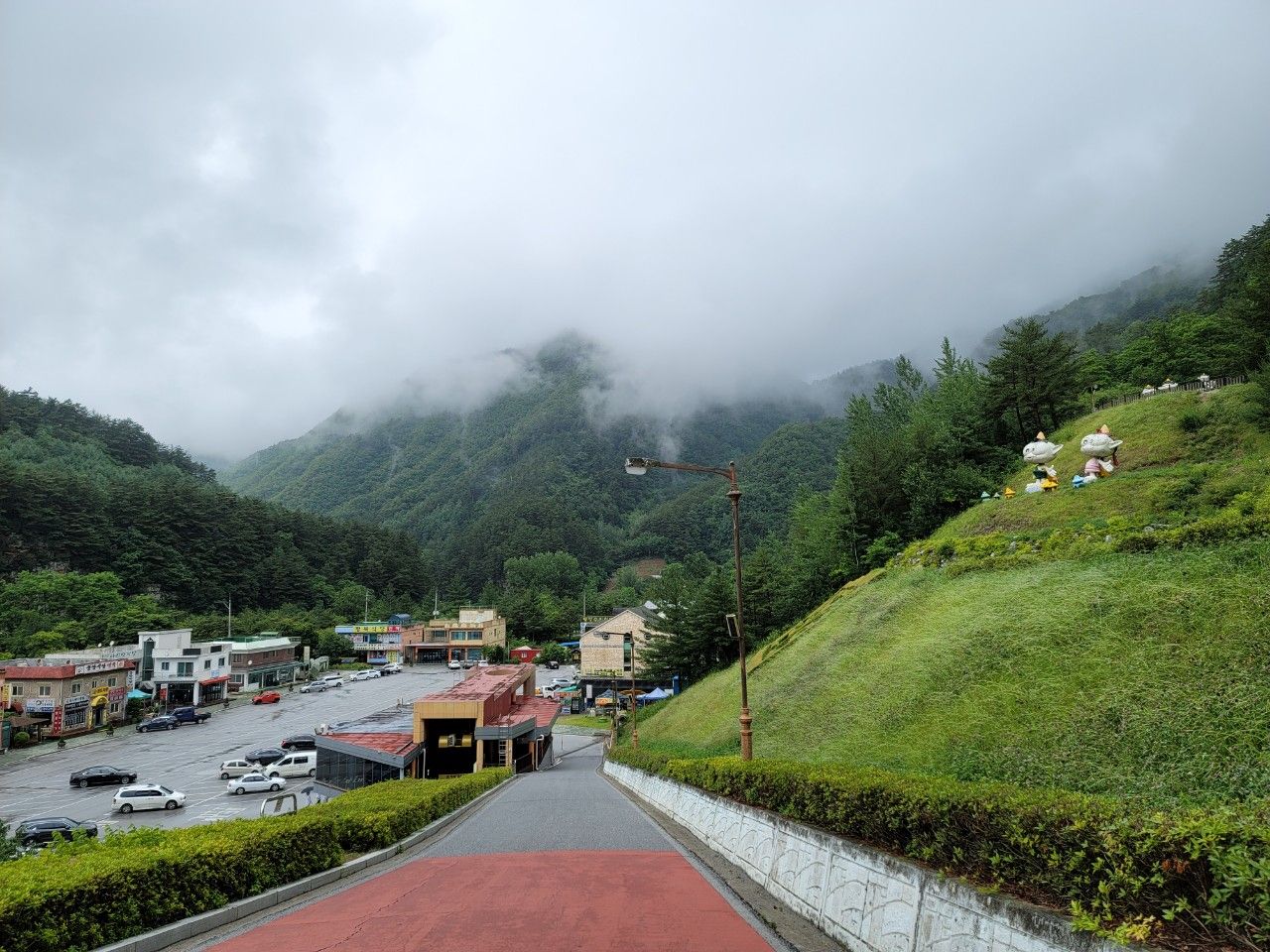 출발했습니다. 아래를 보니 주차장도 비어있네요~~ 여유로운 동굴관람을 기대해 봅니다. ^^