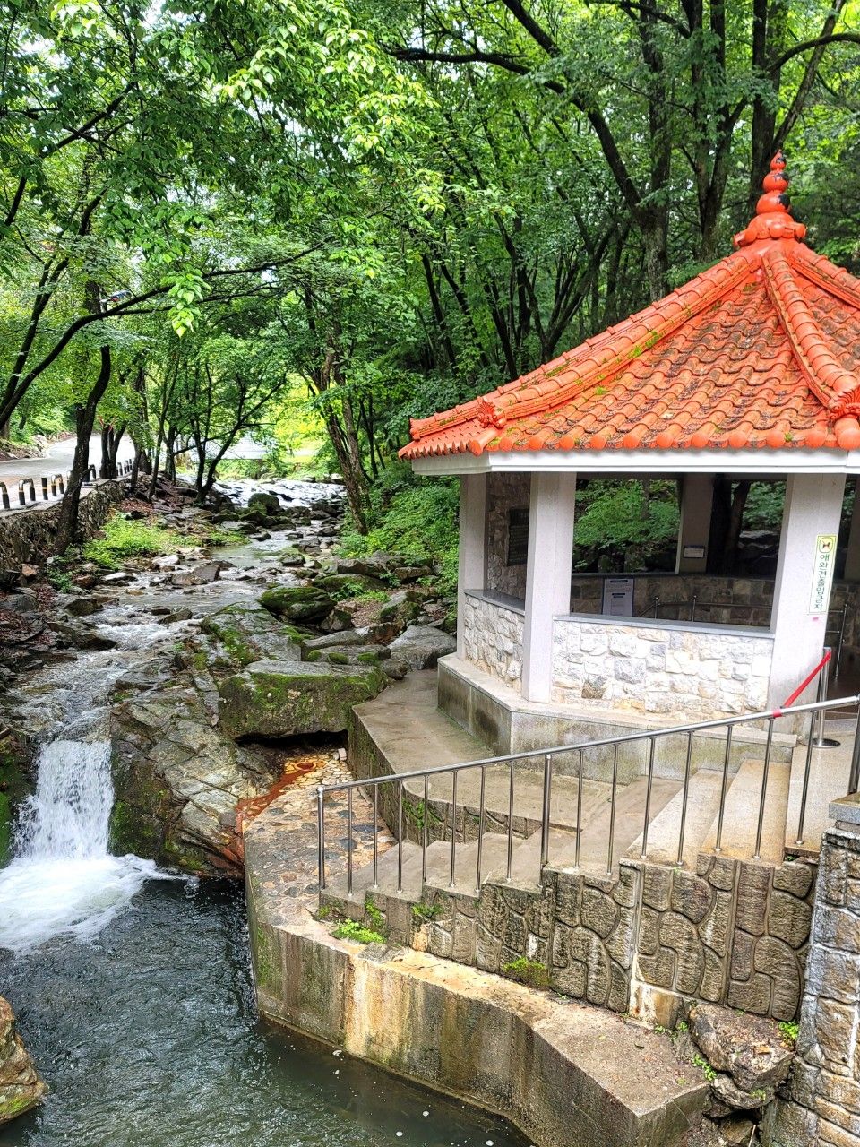 계곡과 화암약수 사이에 보이는 갈색 물길이 뭔가 화암약수의 맛을 먹어보기도 전에 느낄 수 있게 해 주네요~뭔가 철을 먹는 듯한 싸한 그런 맛?? 이랄까요?