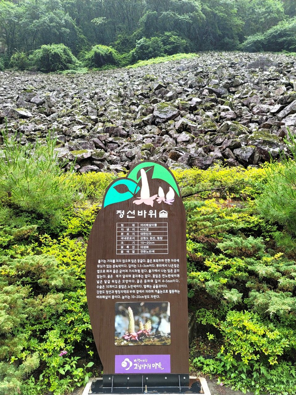 정선바위솔에 대한 안내도 보았습니다. 강원도 정선과 평창지역에 분포하는 여러해살이풀이라고 하네요. 암벽에 붙어 자생한다고 합니다.