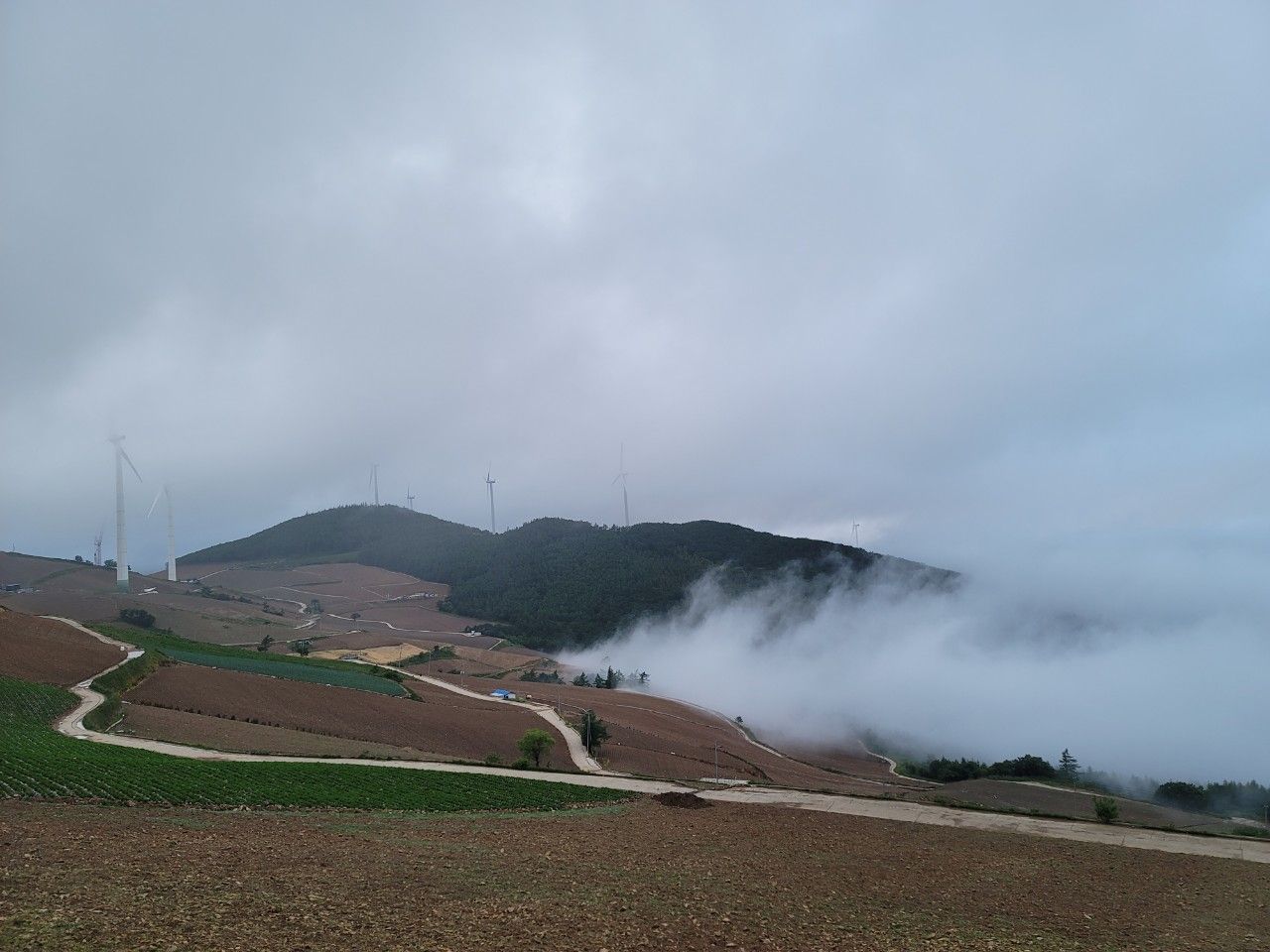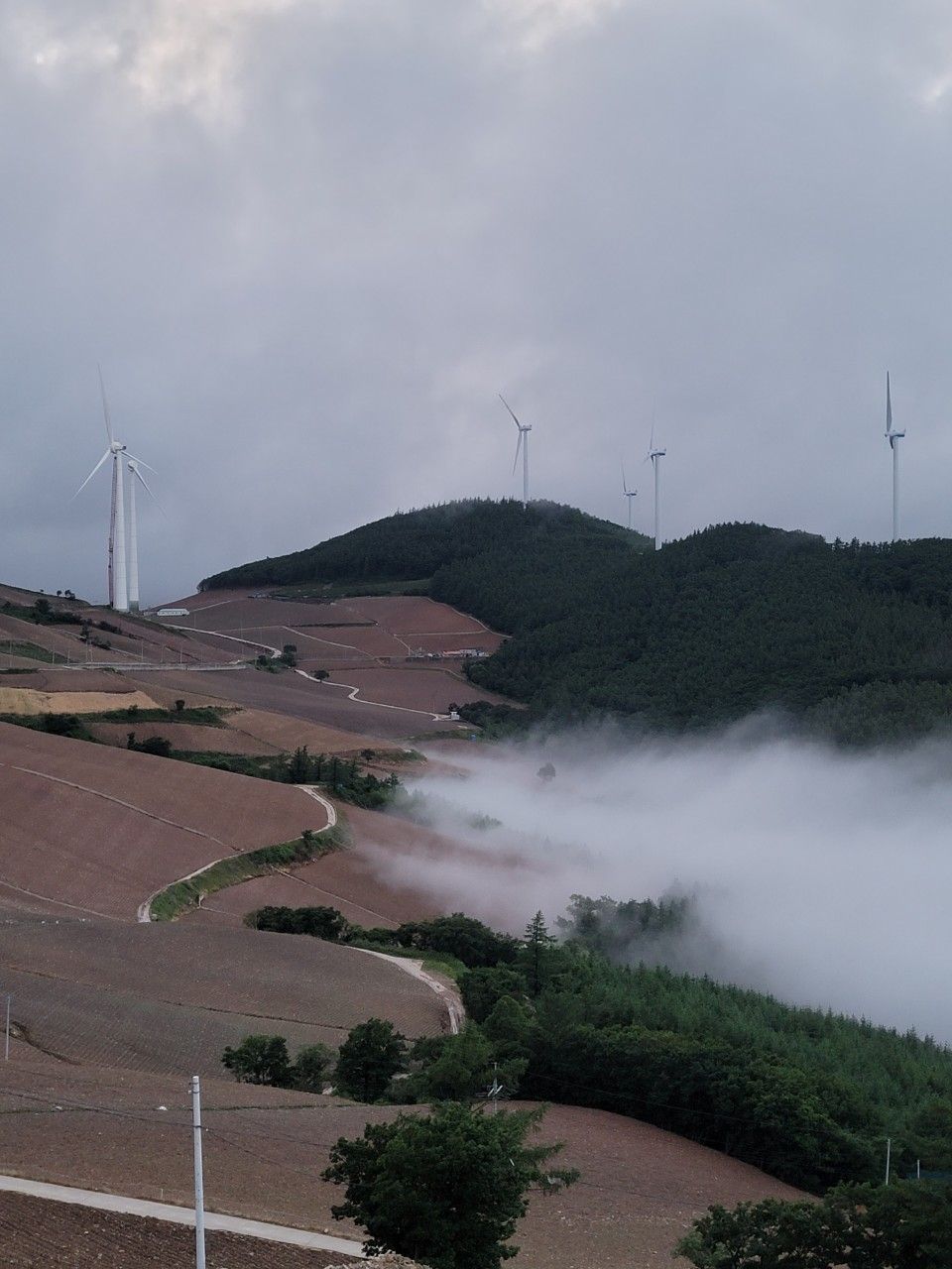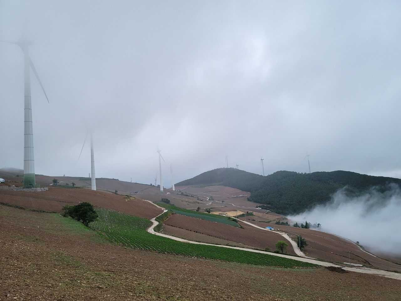 안개가 있는 풍력단지도 운치 있고 좋았는데요. 맑은 날 바람이 불고 날개가 돌아가는 모습도 좋을 것 같았습니다.