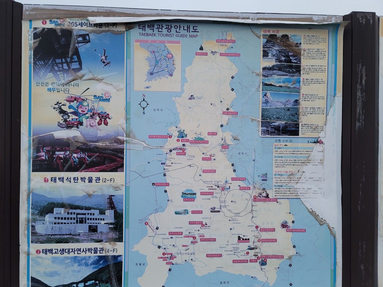 태백관광안내도 살펴보니 예전 다녀온 석탄박물관도 있네요. 바람의 언덕이라 그런지 관광안내도가 많이 낡고 날리기도 하고 있어 아쉬운 마음도 들었습니다.