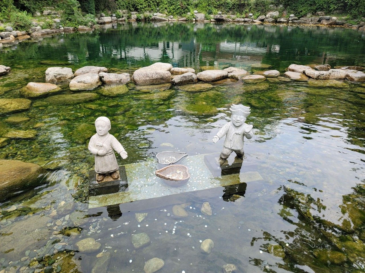 연못에 있는 바가지에 대한 설명도 있었어요. 똥바가지에 동전을 넣으면 액운을 쫓아내 주고, 쌀바가지에 동전을 넣으면 행운을 가져다준다고 합니다. 동전을 가지고 갔으면 던져보고 싶었는데 동전이 없어서 아쉬웠습니다.