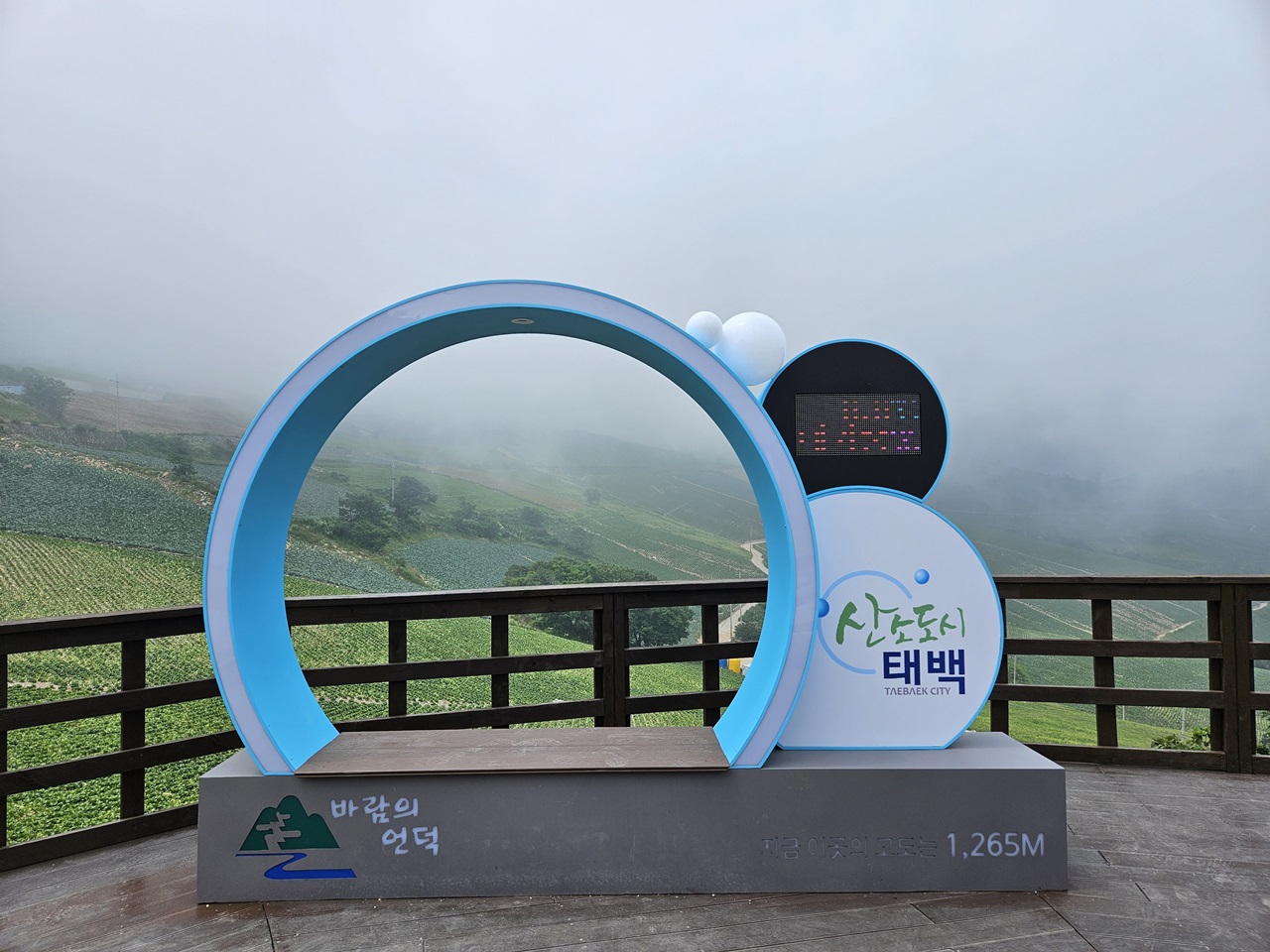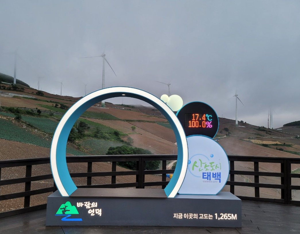 매봉산 바람의 언덕 포토존인데요~ 지난번 방문에는 온습도계가 정상이었는데 이번 여행에서는 고장이 난 건지 볼 수가 없었는데요. 전원이 꺼져 있는 것 같기도 했습니다.