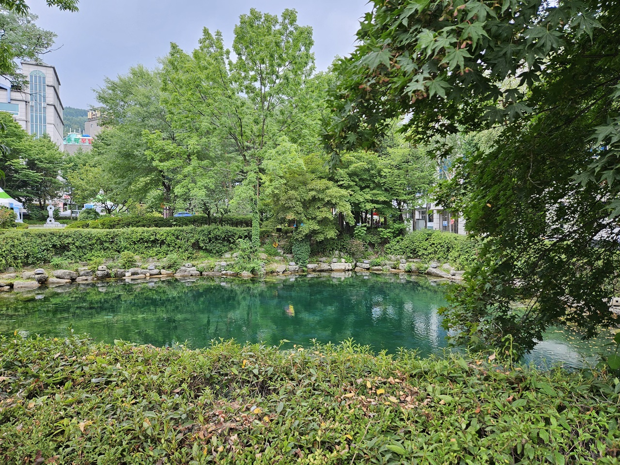 황지연못의 모습인데요. 멀리 연못의 한가운데 기포가 한 번씩 올라오는 모습이 보여서 물이 솟아나고 있나 보다~ 생각했습니다.