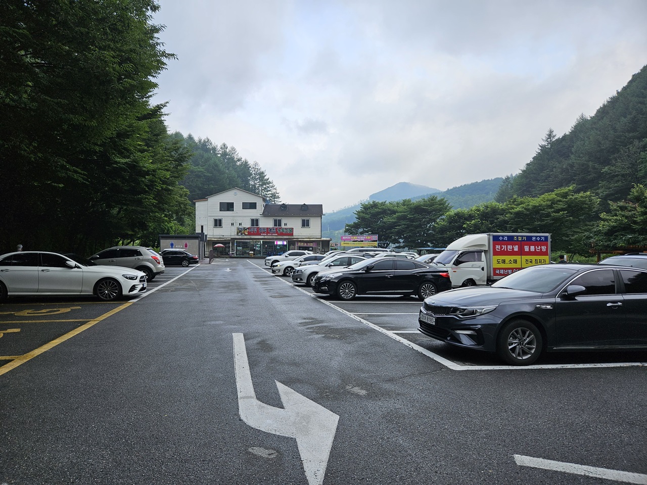 주차공간은 충분하고 식당도 한 곳이 영업을 하고 있었습니다.