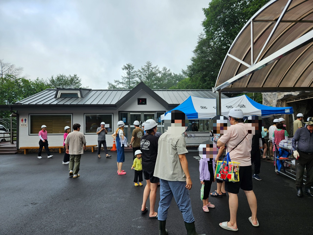 동굴 입구에서 안전모를 착용해야 하는데요. 함께 열차를 타고 온 사람들이 아주 많았답니다. 직원분들이 안전모 착용도 도와주시더라구요.