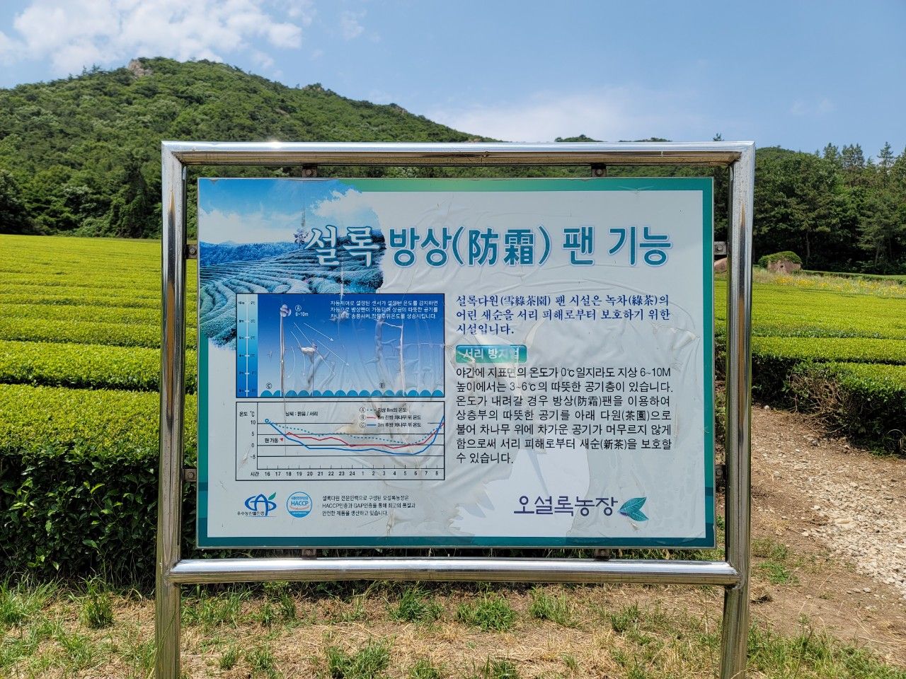방상팬의 기능은 녹차의 어린 새순이 차가운 공기로 피해를 입지 않도록 지상 6~10m 높이에 있는 따뜻한 공기층을 아래로 보내주는 역할을 한다고 합니다. 저런 아이디어를 어떻게 생각해 내는지 신기했답니다.