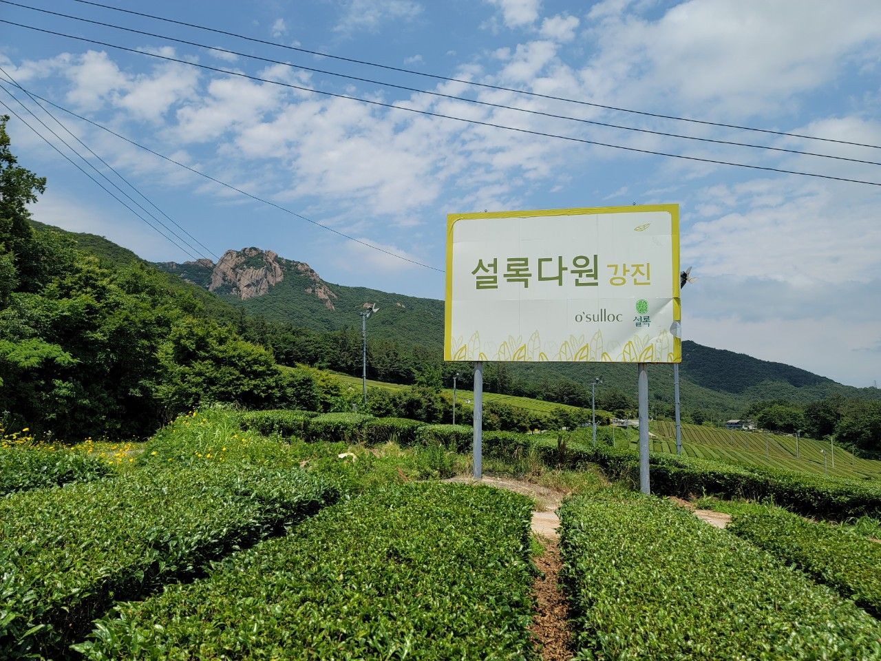 월출산 산행 후 경포대탐방지원센터에서 600m가량 떨어진 곳에 있는 설록다원강진을 찾았습니다. 제주다원 다음으로 우리나라에서 큰 차밭이라고 합니다. 월출산 아래 조성된 차밭으로 1982년부터 시작된 아주 넓은 차밭이었습니다.