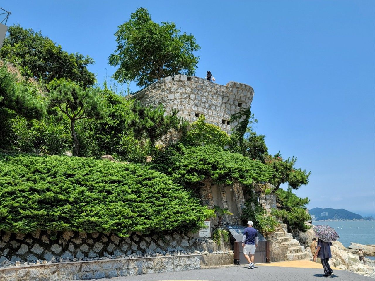 거제 여행에서 한 번쯤은 가볼 만한 매미성에 다녀왔습니다. 태풍 매미 때 기억이 어렴풋이 나 더 기억에 남는 여행지였던 것 같습니다. 포토존 가득하면서 유럽 어느 성에 와 있는 착각이 드는 장소이기도 했습니다.