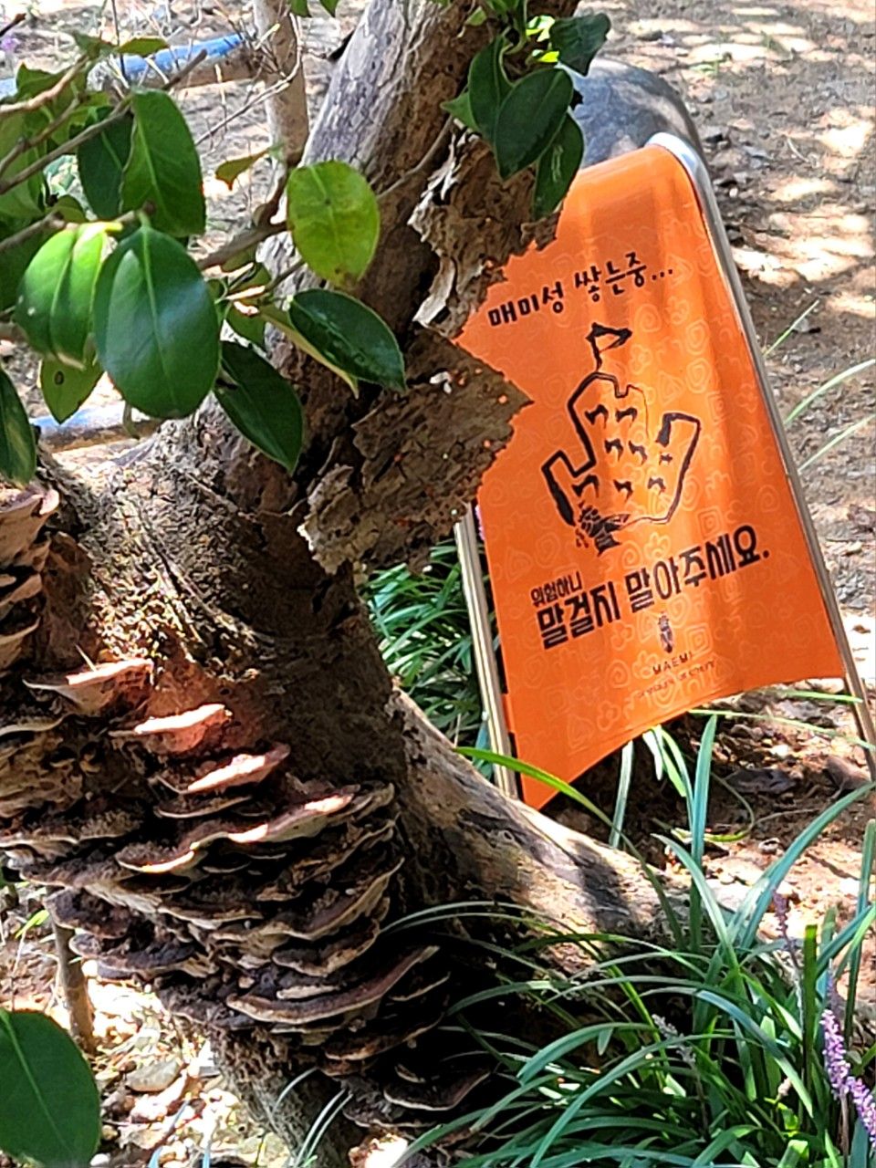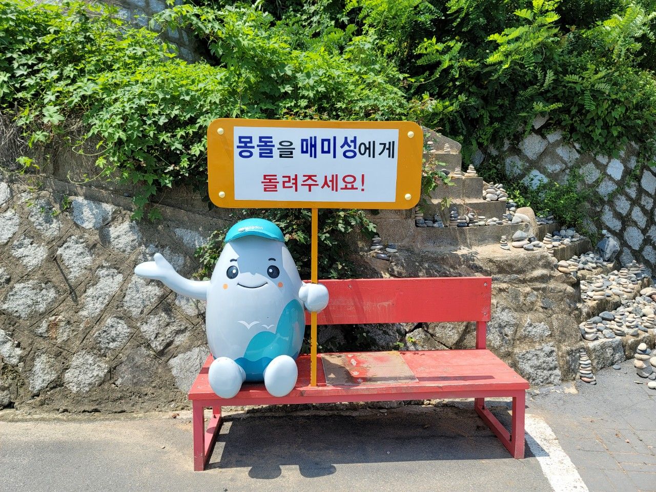 바닷가가 몽돌해변이라 몽돌을 가져가지 말라는 표현을 '몽돌을 매미성에게 돌려주세요!'로 하는 것 같았답니다.