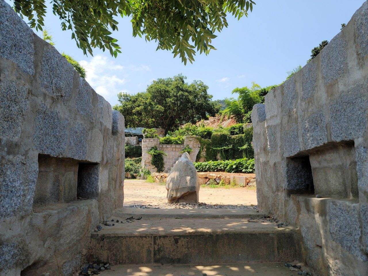 🔎 매미성은 2003년 태풍 매미로 경작지를 잃은 백순삼 씨가 오랜 기간에 걸쳐 화강암과 시멘트로 쌓아 올린 자연재해로부터 농작물을 지키기 위한 벽입니다. 유럽 중세시대 성을 연상케 하여 많은 관광객이 찾는 곳이 되었으며 그 규모나 디자인이 설계도 없이 쌓았다고는 믿기지 않는 곳이기도 합니다.