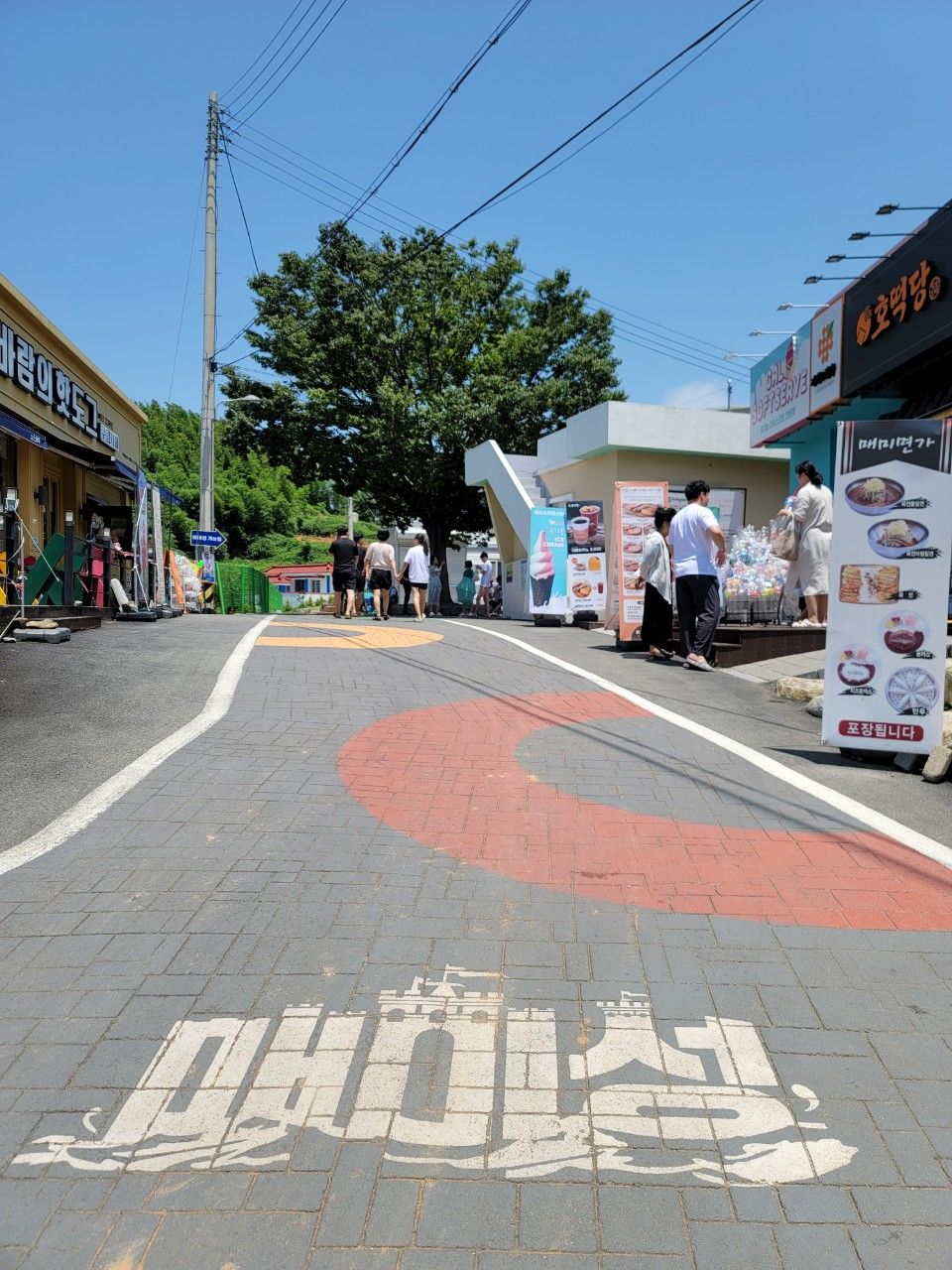 바닥에 멋진 매미성 이정표 따라서~~ 유명한 바람의 핫도그 가게도 보이네요~^^