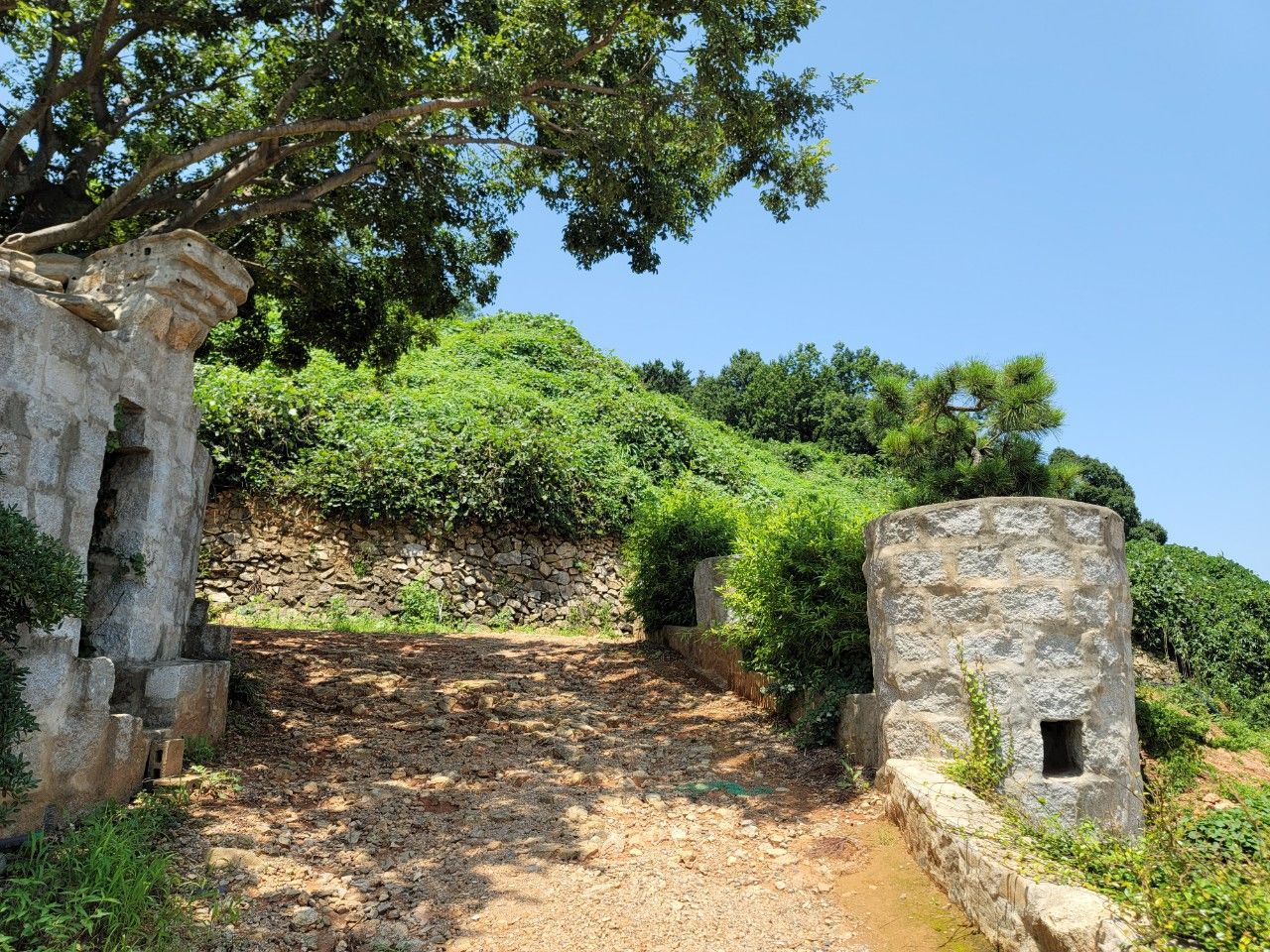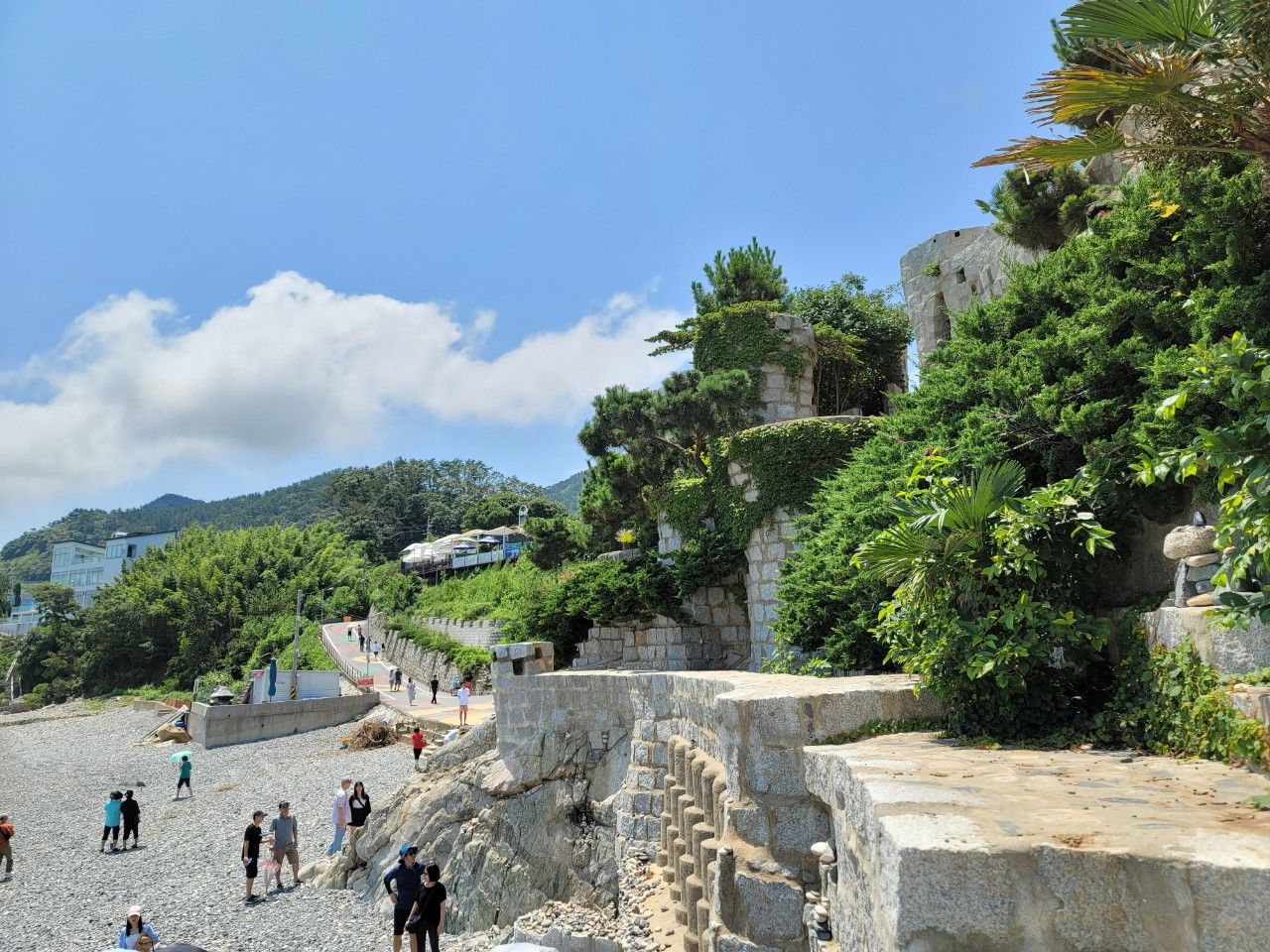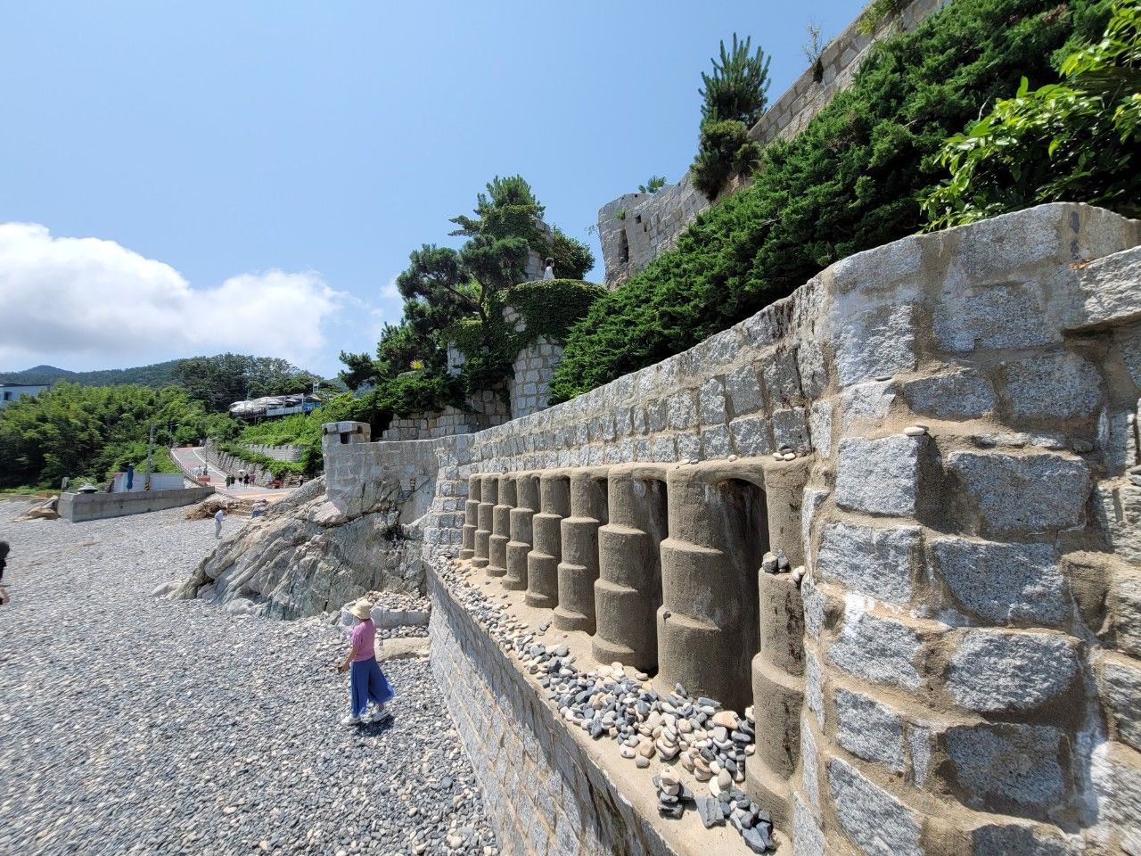 🔎 매미성은 2003년 태풍 매미로 경작지를 잃은 백순삼 씨가 오랜 기간에 걸쳐 화강암과 시멘트로 쌓아 올린 자연재해로부터 농작물을 지키기 위한 벽입니다. 유럽 중세시대 성을 연상케 하여 많은 관광객이 찾는 곳이 되었으며 그 규모나 디자인이 설계도 없이 쌓았다고는 믿기지 않는 곳이기도 합니다.