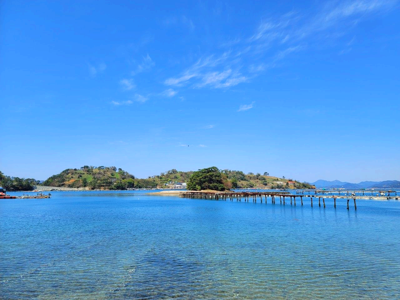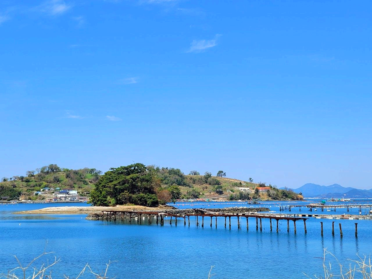 멀리서 바라보는 모습이 한적하기까지 한 섬과 바다의 모습이 아름답습니다.