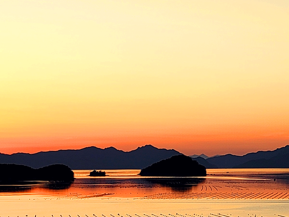 점점 해가 넘어가고 주황색 바다만 남았습니다.