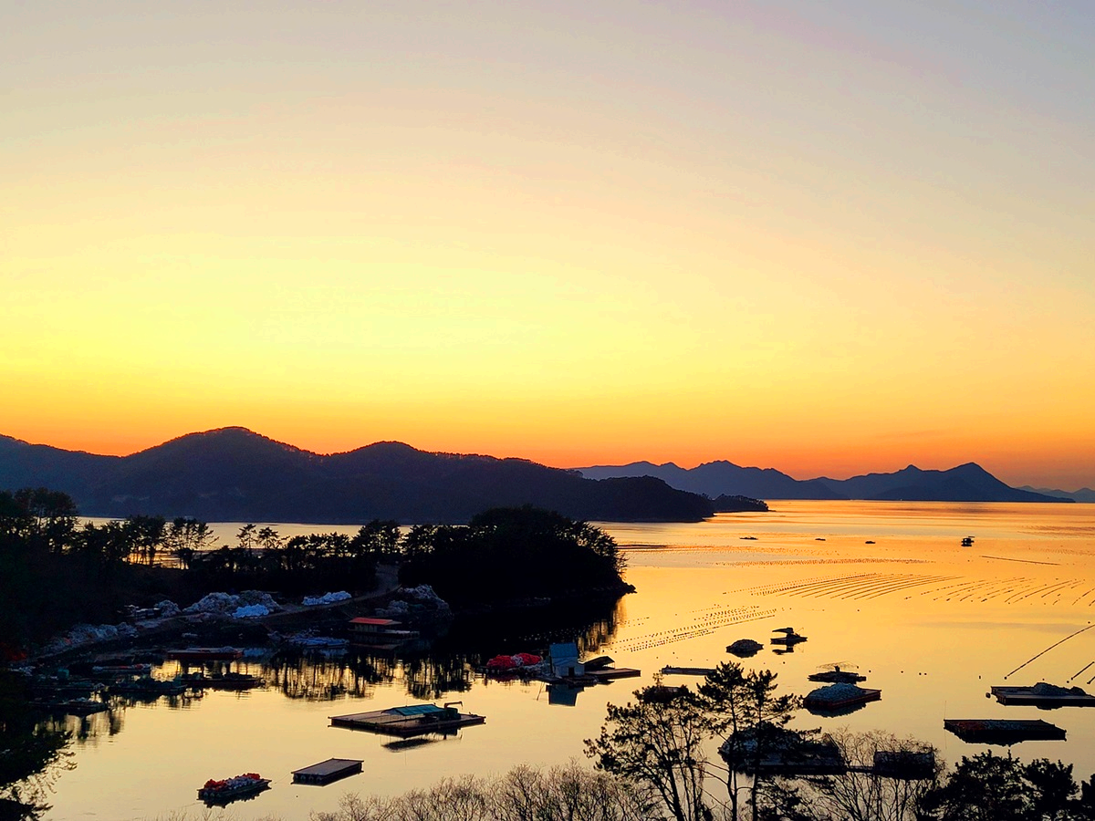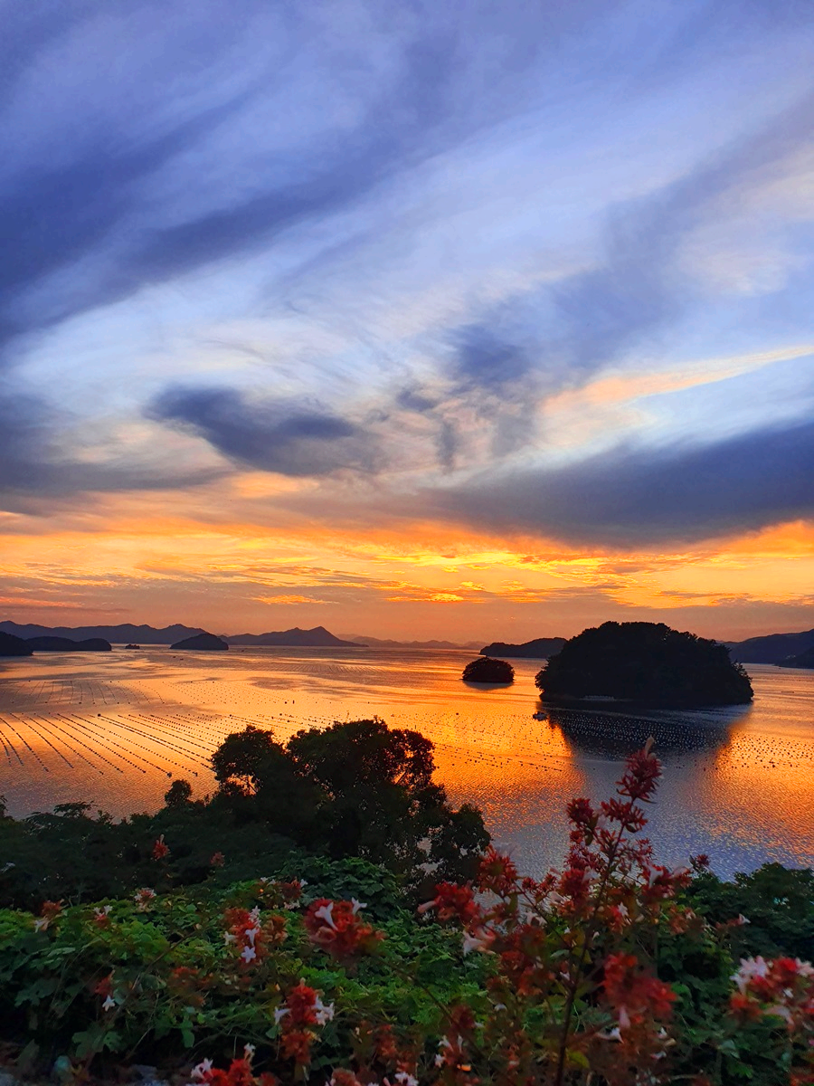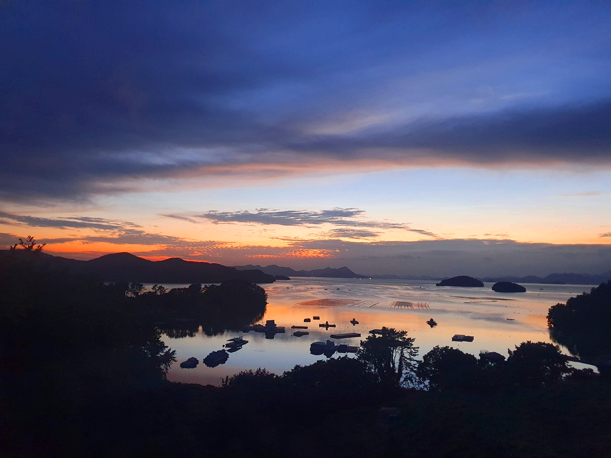 일몰 전망대에서 바라본 통영바다의 일몰 모습입니다.