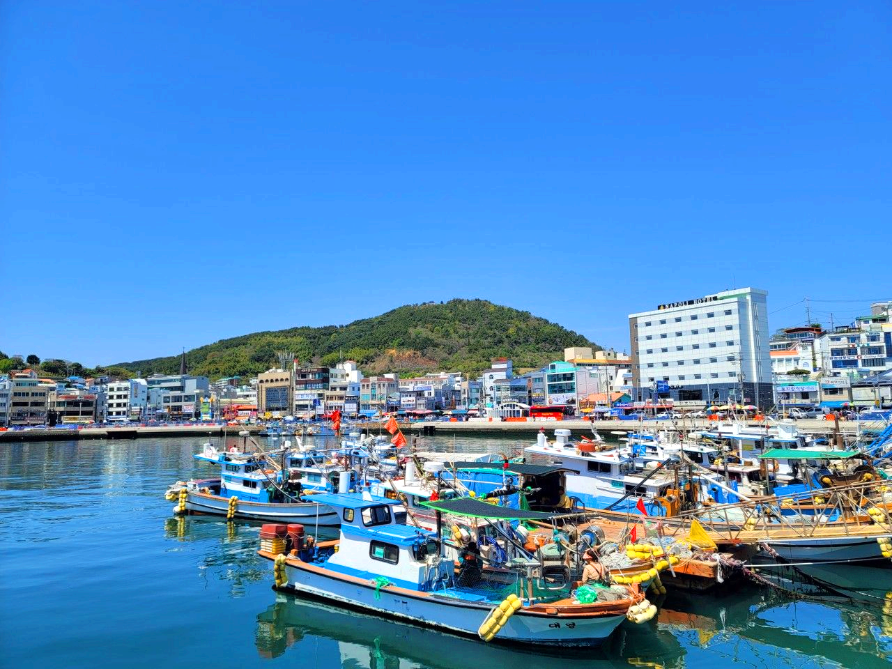 작은 배들이 조업을 나가기 위해 준비 중인 듯합니다.