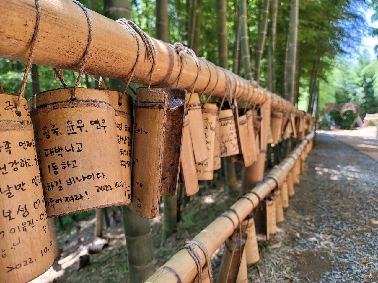 대나무 원통에 원하는 소원을 적어서 걸어놓았네요~