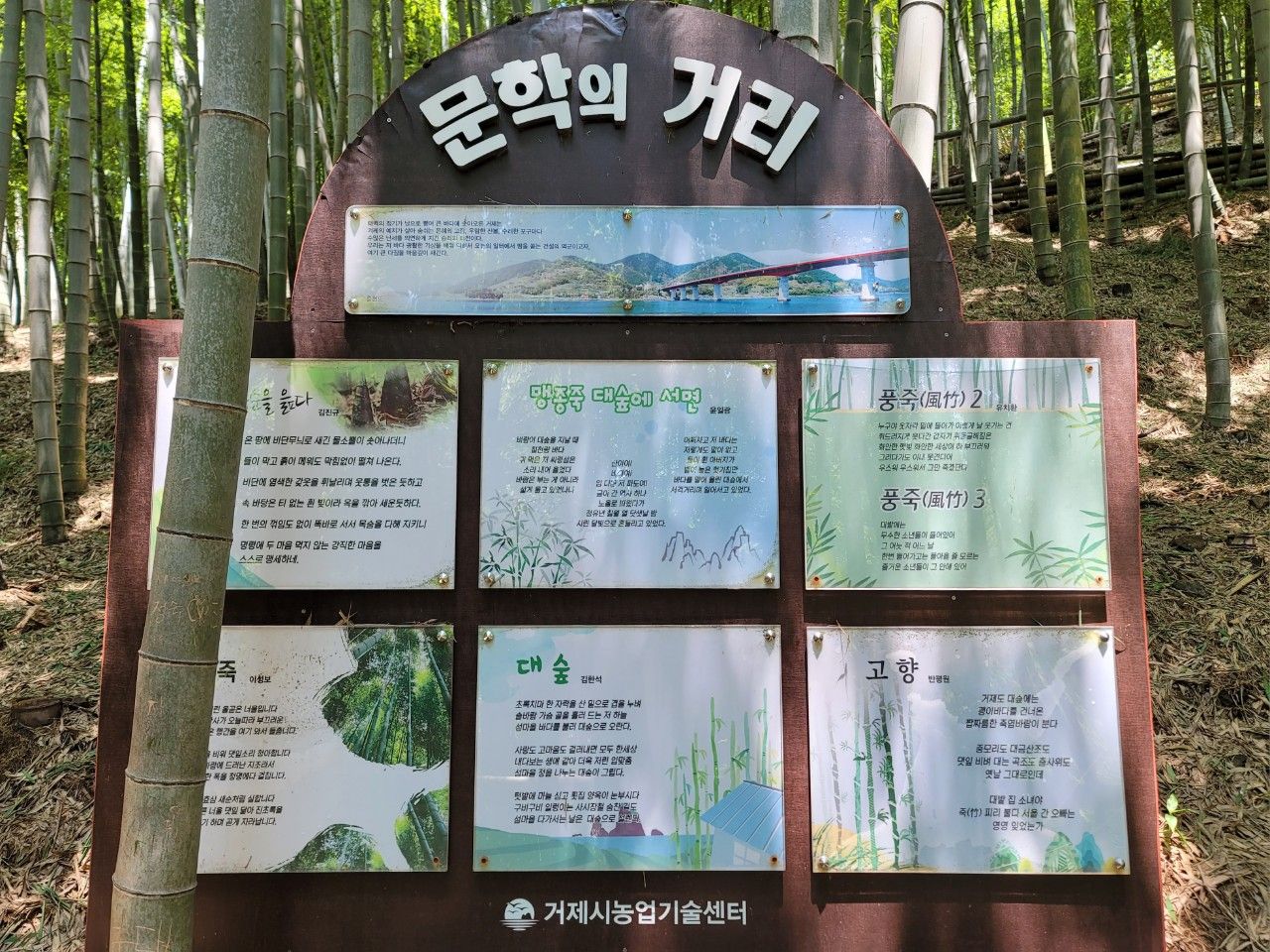 대나무 종류도 상당히 많다고 하네요. 우리나라에는 자생하는 것과 도입된 것 해서 54종 정도라고 하고 거제 맹종죽은 죽순을 식용으로 사용할 수 있어 죽순대라고도 불린다고 하네요. 4월에 죽순이 나고 식이섬유가 아주 풍부해 건강식품이라고 합니다. 맹종죽의 85% 이상이 거제에서 생산된다고 하네요~^^