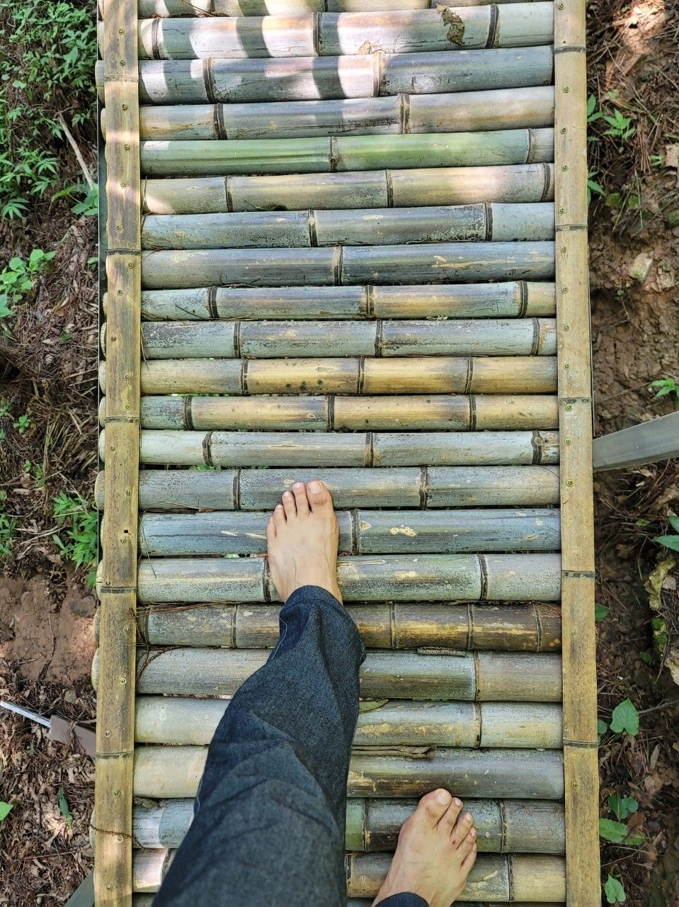 시원하게 맨발로 걸어보니 적당한 지압으로 아프지 않네요~
