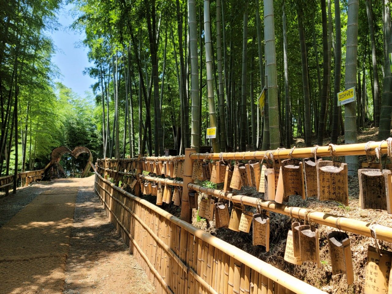 대나무 원통에 원하는 소원을 적어서 걸어놓았네요~