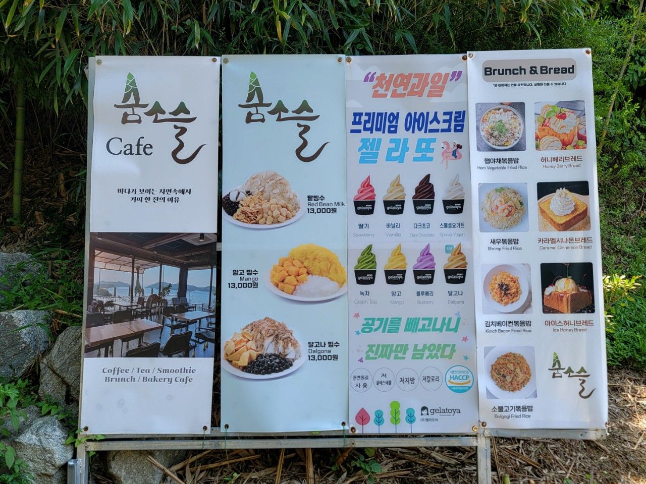 2층 주차장에 있는 카페 숨소슬 메뉴도 살펴보았는데요. 눈으로만 보고~~