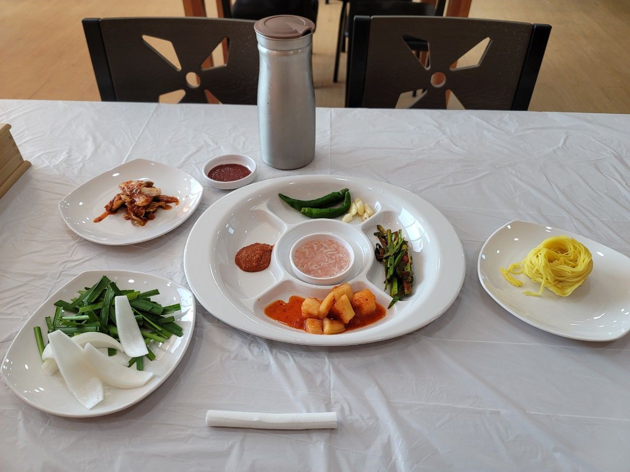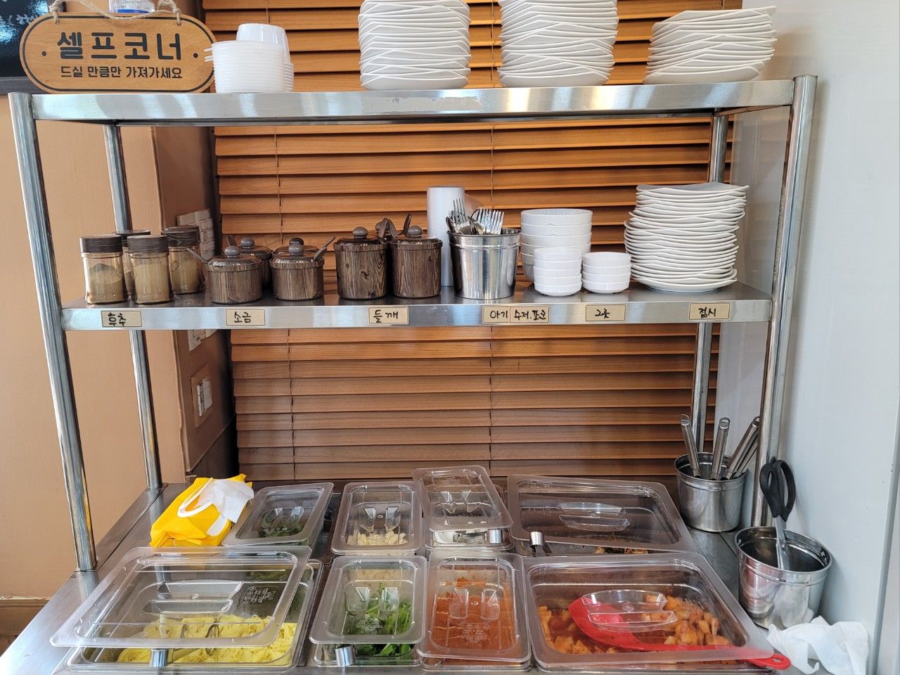 국수와 밑반찬, 소스류 등 추가는 셀프바에서 가능한데요. 셀프바도 아주 깔끔하니 정리가 잘 되어 있었습니다.