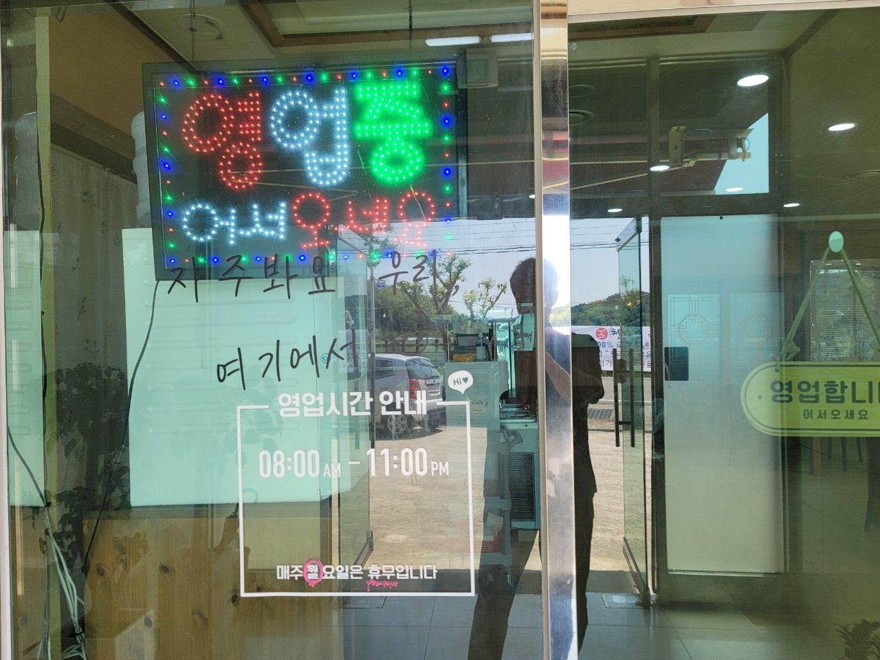 오후 2시 30분쯤 조금 늦은 점심을 먹으러 갔습니다. 영업시간 8시부터 저녁 11시까지, 매주 월요일은 휴무네요~
