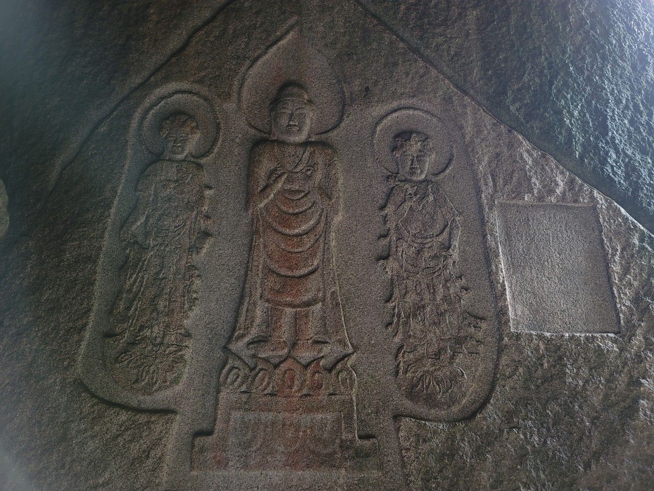 가섭암지 마애삼존불상 도착~ 바위틈에 새겨진 부조 형태의 삼존불이 엄청난 아우라가 느껴졌답니다. 바위틈에 있어 보존상태가 아주 좋은 것도 참 마음에 들었습니다.