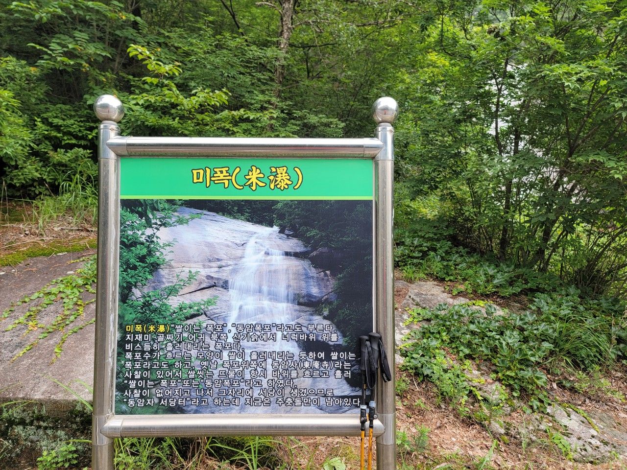 미폭은 폭포수 흐르는 모양이 쌀이 흘러내리는 모양을 하고 있어 '쌀 이는 폭포', 예전에는 폭포 위 동암사라는 사찰이 있어 '동암폭포'라고도 불렀다고 합니다.