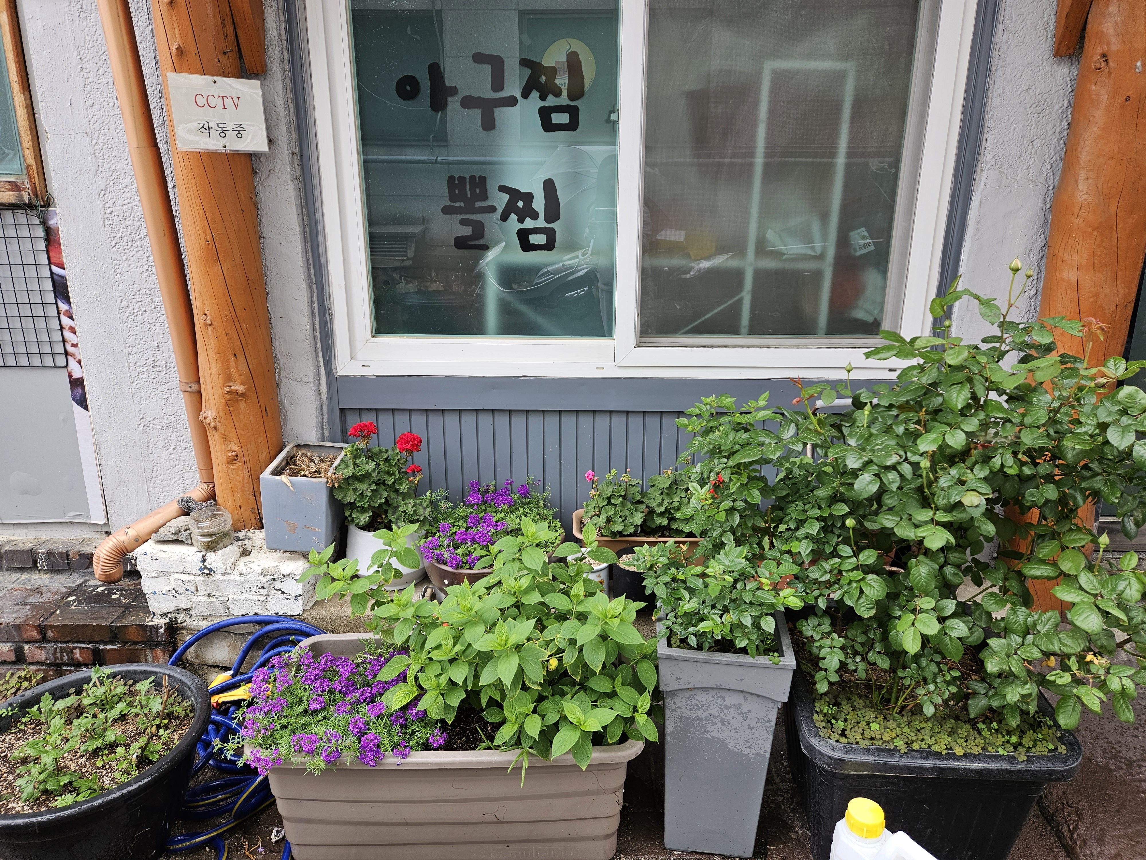 밥 먹은 후 밖으로 나와보니 이쁜 화분들이 나란히 놓여 있었습니다. 장미도 보이고^^