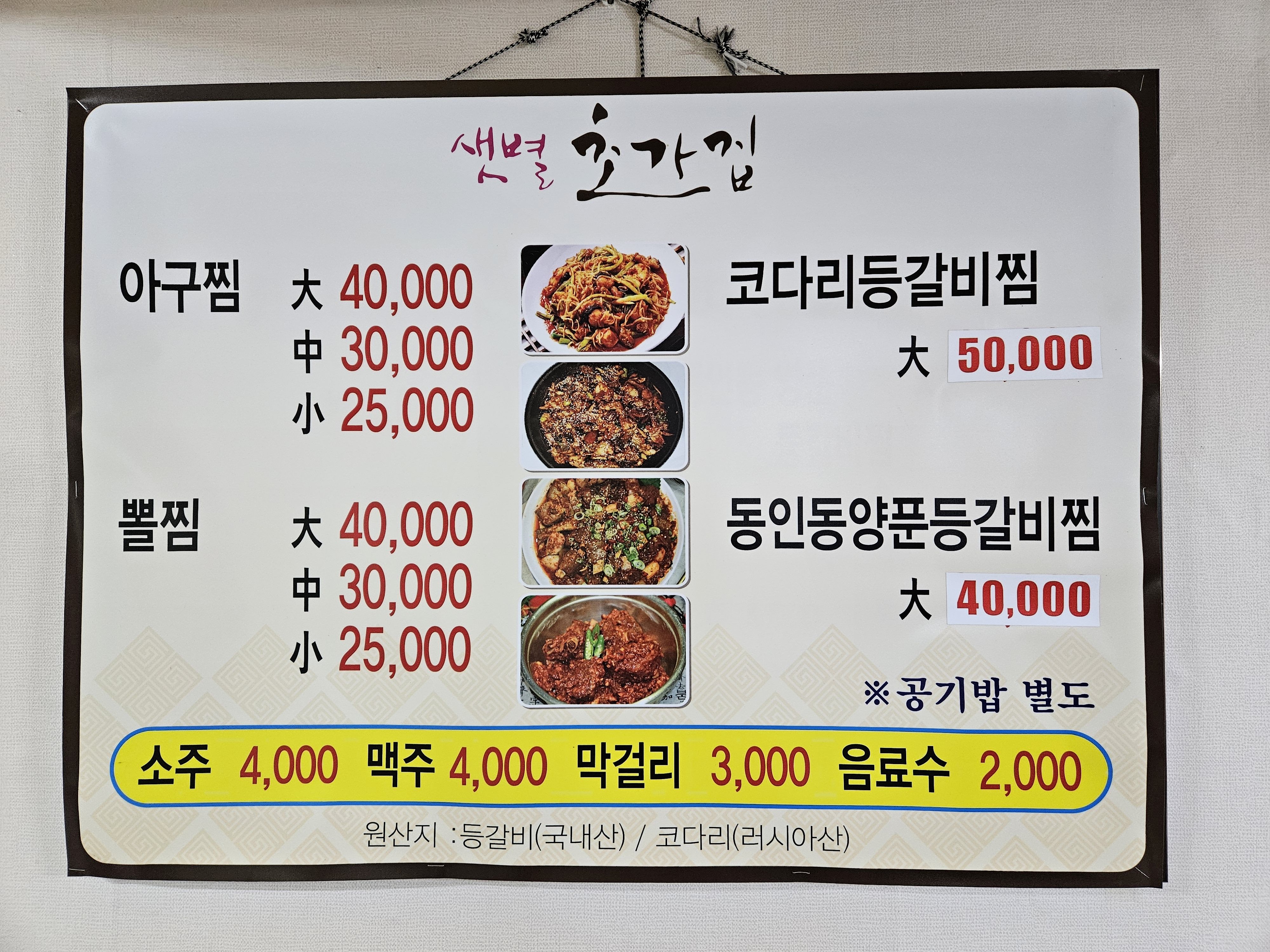 메뉴판입니다. 오늘 주문한 음식은 아귀찜 대 입니다.