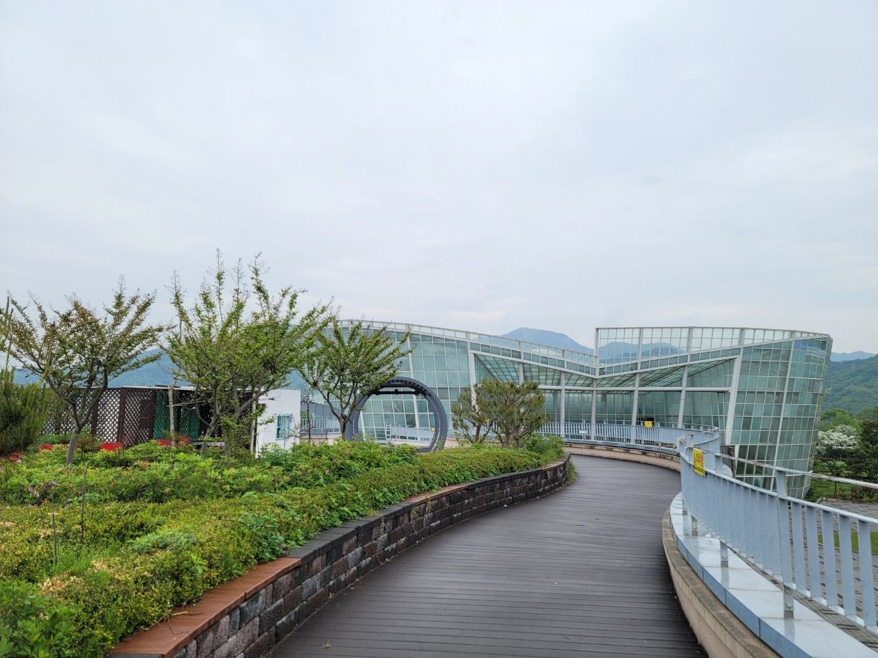 뒤로 보이는 건물이 열대식물원입니다. 다양한 열대식물들이 가득 있어서 볼거리가 많았고 1층으로 들어갔다 2층 좌측에 보이는 통로로 나오는 재미도 있었습니다.
