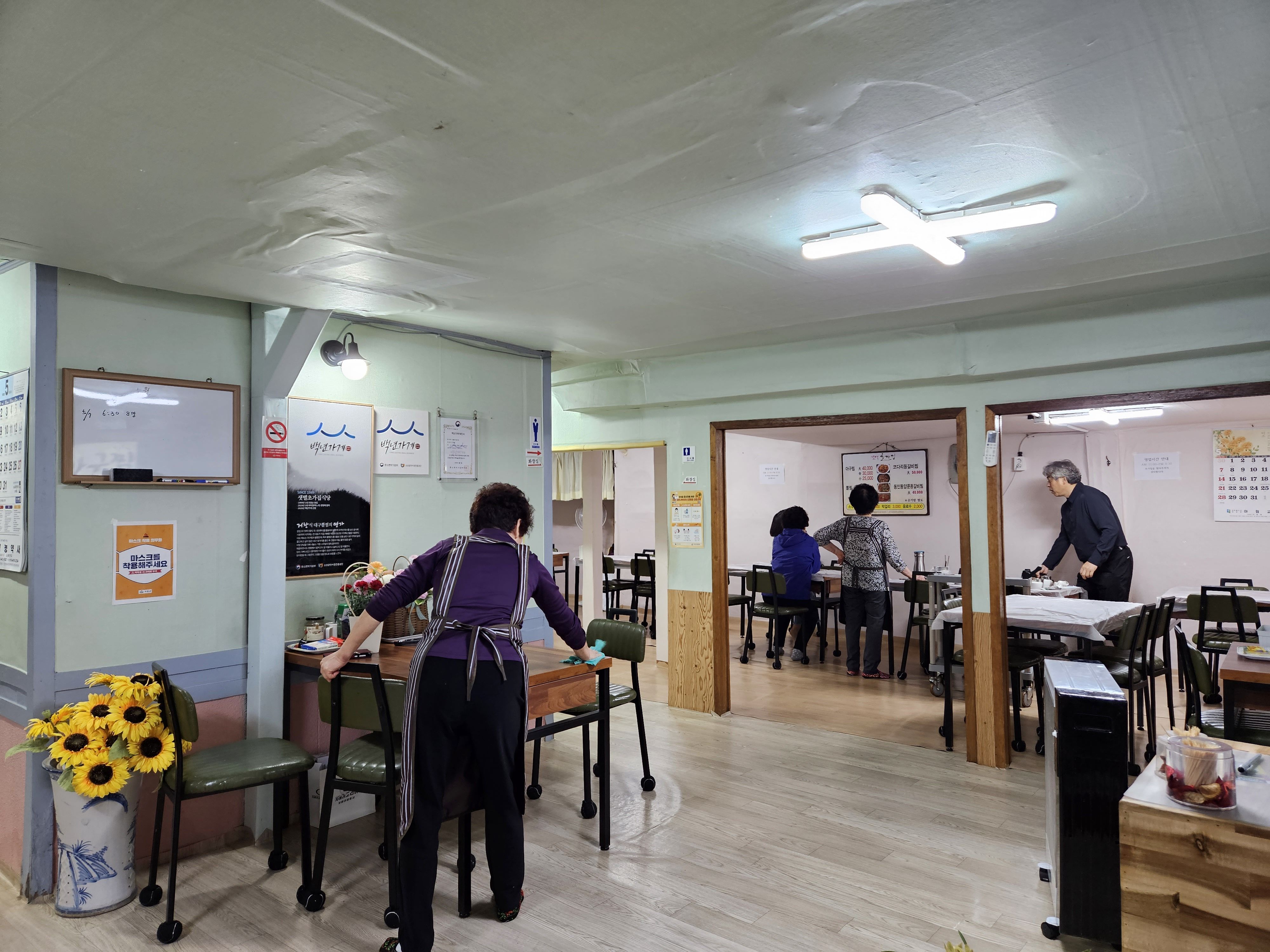 깔끔한 식당 내부입니다. 예전 식당 문을 트고 테이블을 놓은 것 같습니다.