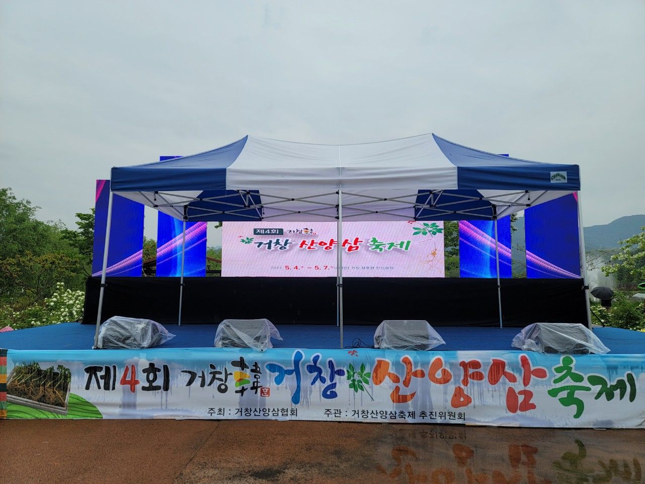 비가 내리고 거창 산양삼 축제가 있던 날이었는데요. 축제장이 노랫소리만 크게 울리고 사람들이 없어서 제가 다 안타까웠습니다.