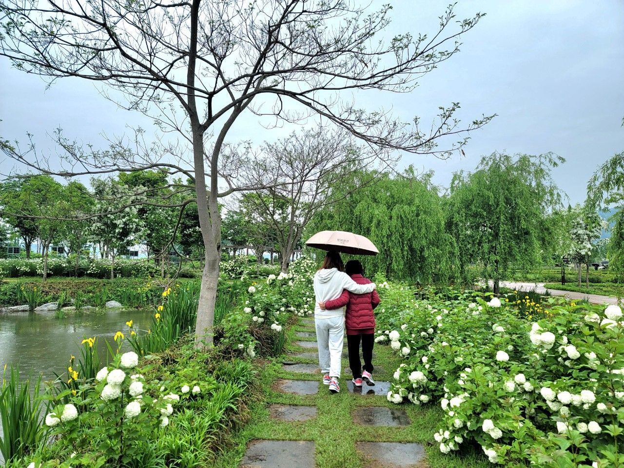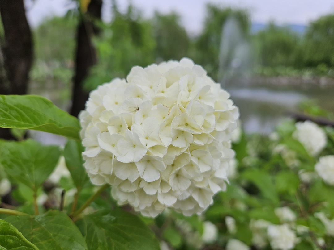 분수도 시원하게 나오고 있고 호수 가장자리로 수국이 한창이었습니다. 불두화와 흡사하고 동그란 꽃 봉오리가 참 이쁘답니다. 사실 수국과 불두화 구분을 정확히 하지 못하고 있습니다.^^