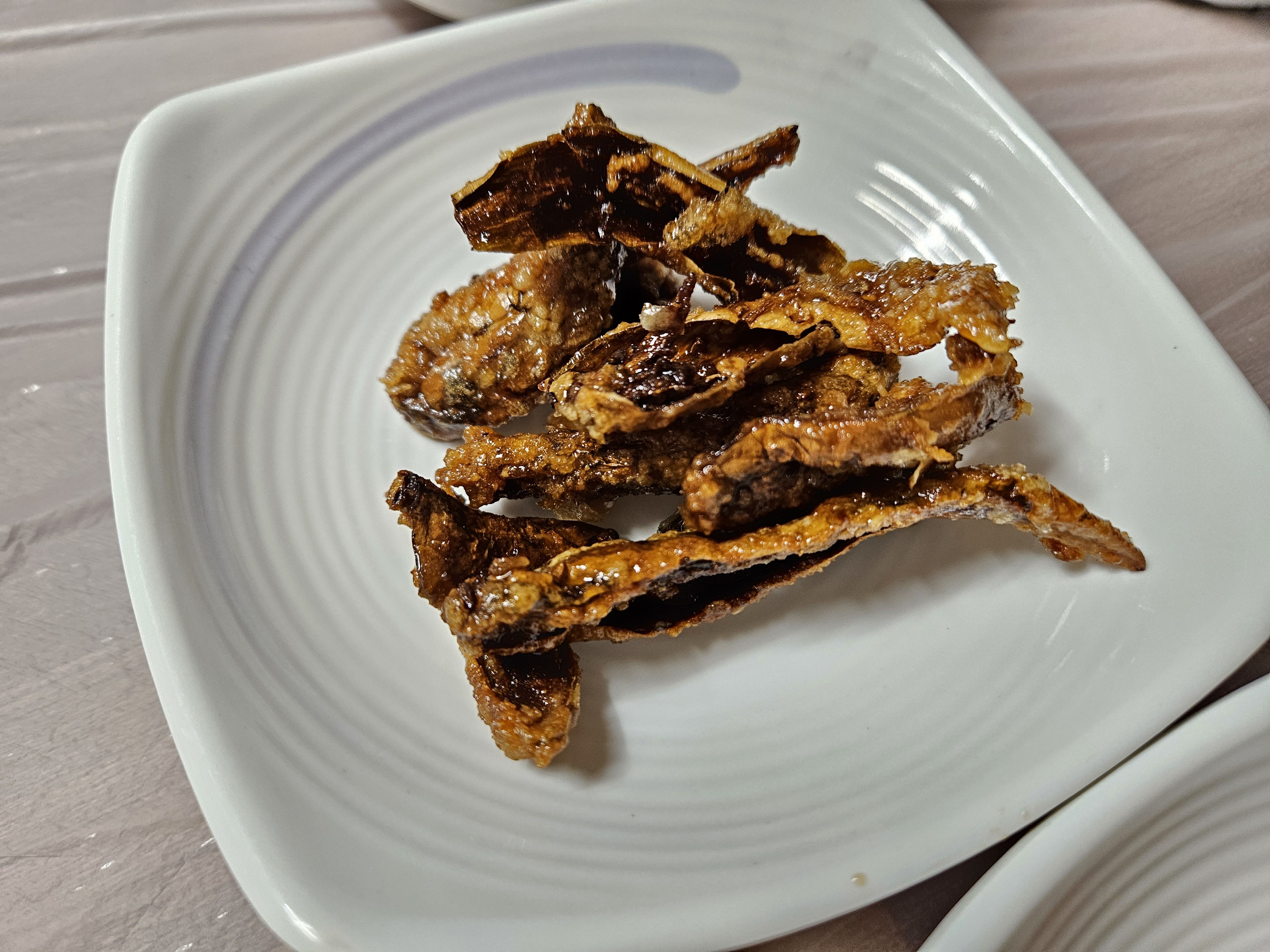 고추튀각과 쥐포무침~비가 내려서인지 고추튀각이 바삭하지 않아 조금 아쉬웠지만 맛있었습니다.