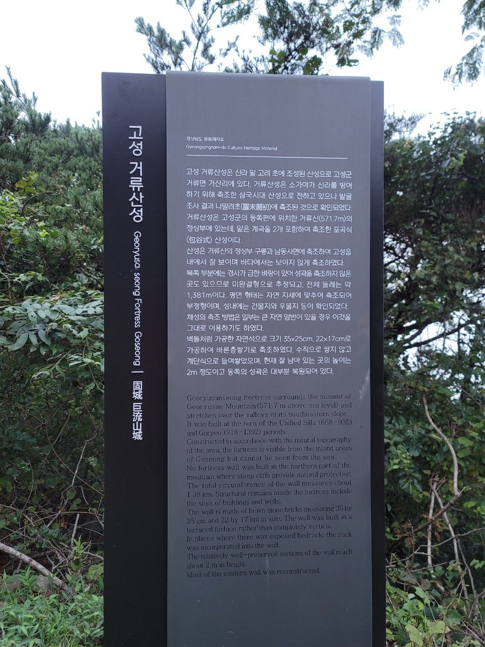 고성 거류산성 안내도 살펴보았습니다. 길이 1,381m 정도이며 완성되지 못한 산성으로 추정하고 있다고 하네요.