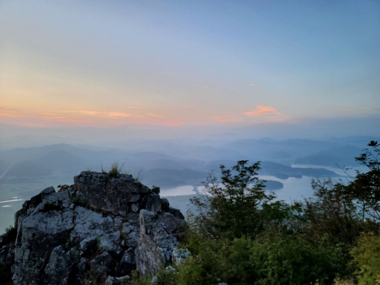 거류산 정상에 도착을 했습니다. 갑자기 몰려온 구름으로 일몰에 대한 기대감 살짝 낮아지네요.