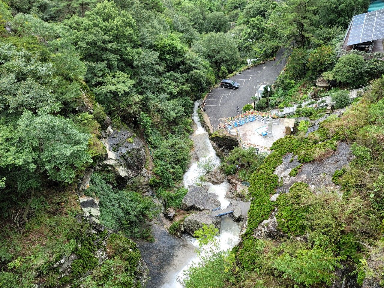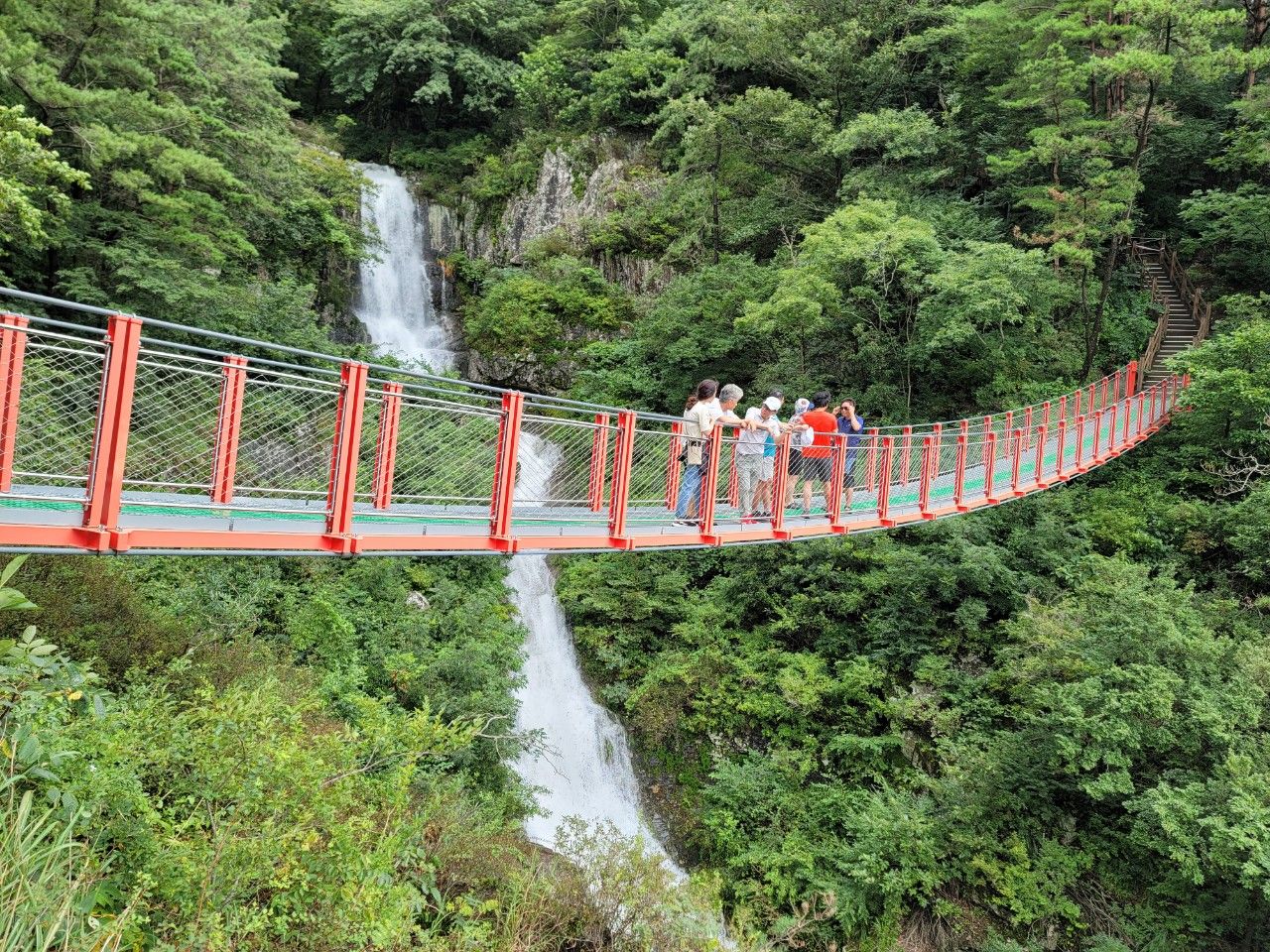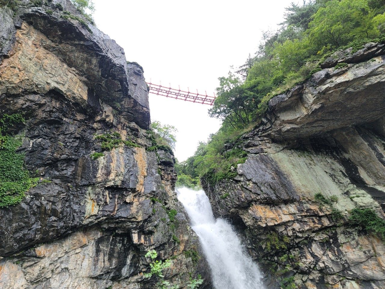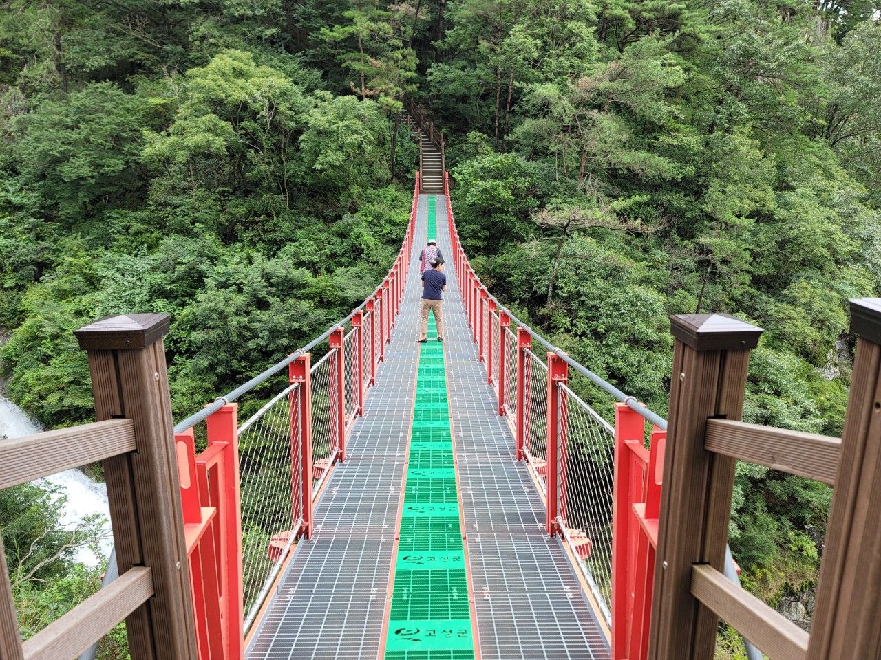 🔎 경남 고성군에 있는 구절산 폭포암에는 제3폭포 위 지상에서 50m 높이, 길이 35m 출렁다리가 있으며 많은 폭포수에 주변이 장관을 이루는 곳입니다.