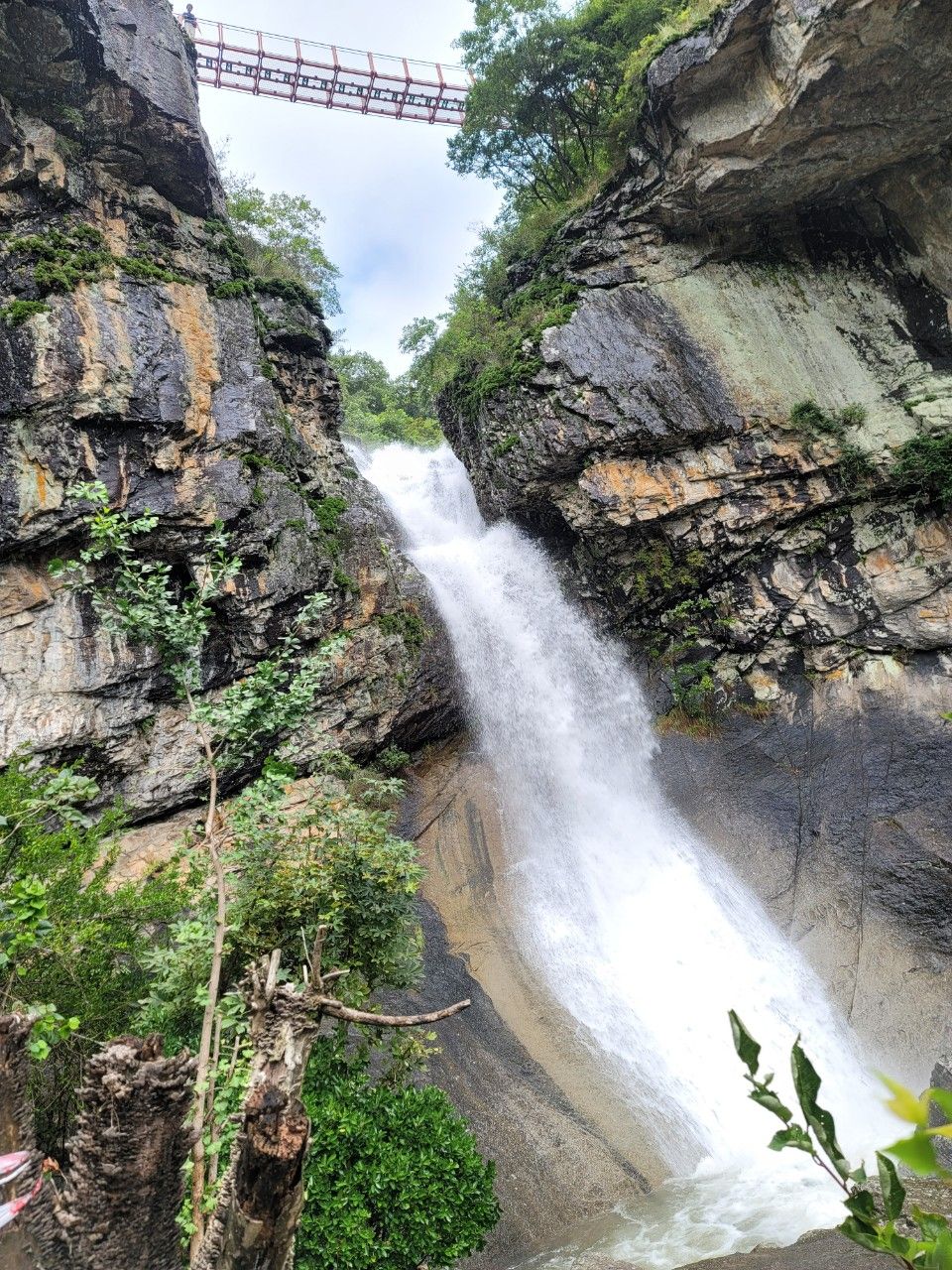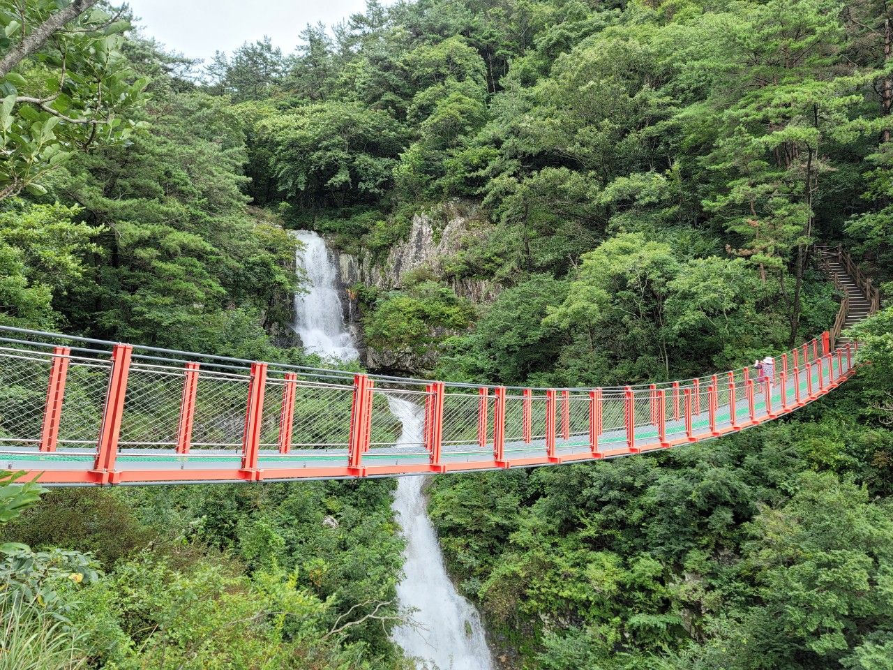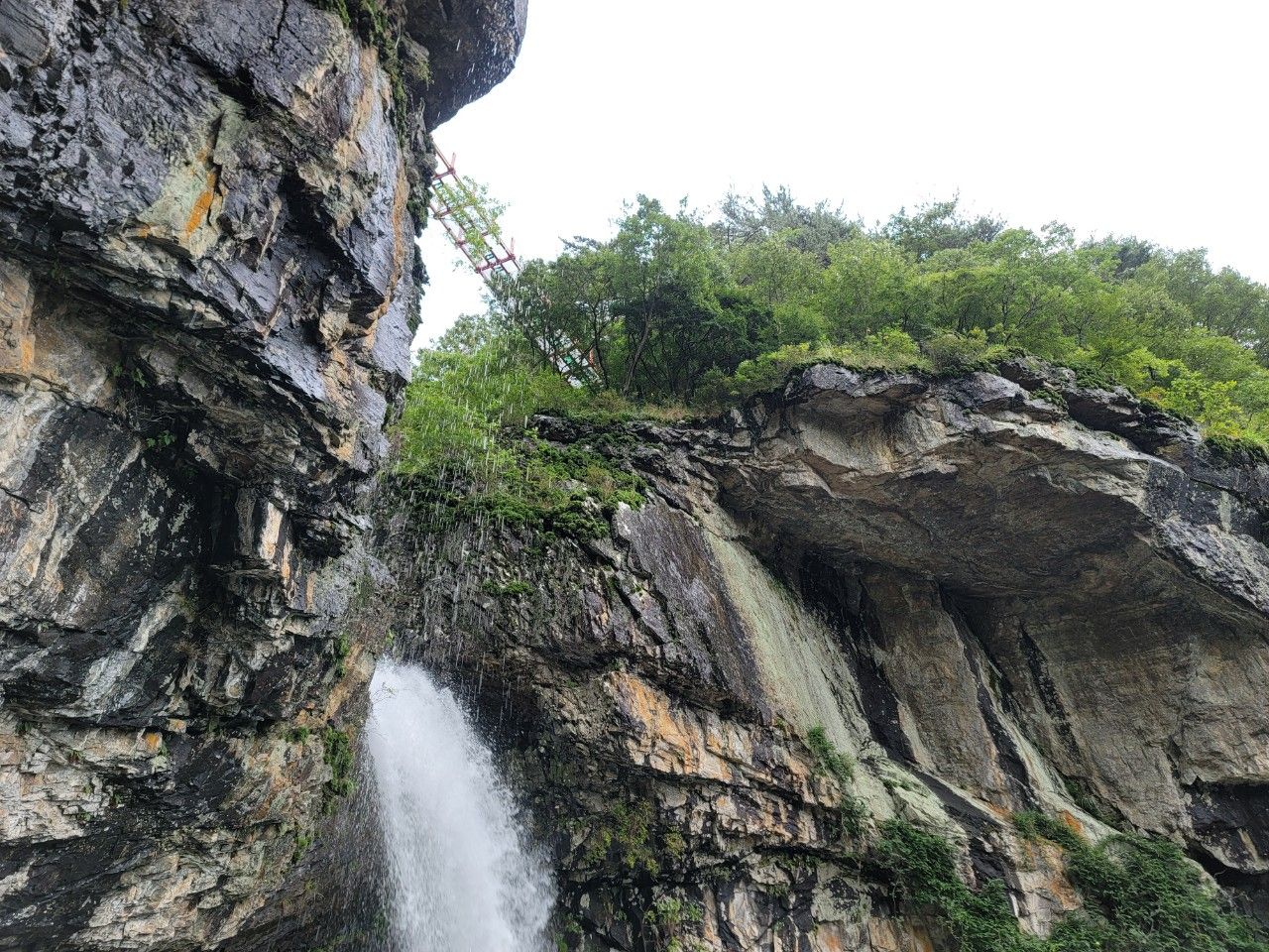 🔎 경남 고성군에 있는 구절산 폭포암에는 제3폭포 위 지상에서 50m 높이, 길이 35m 출렁다리가 있으며 많은 폭포수에 주변이 장관을 이루는 곳입니다.