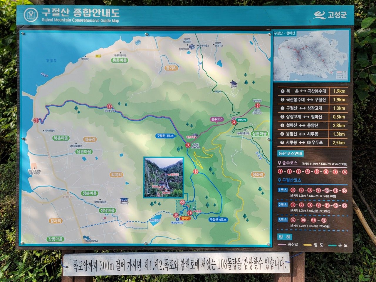 구절산 출렁다리 안내도 살펴보았는데요. 비가 온 뒤 폭포수가 많을 때 더 장관을 이루는 듯합니다.