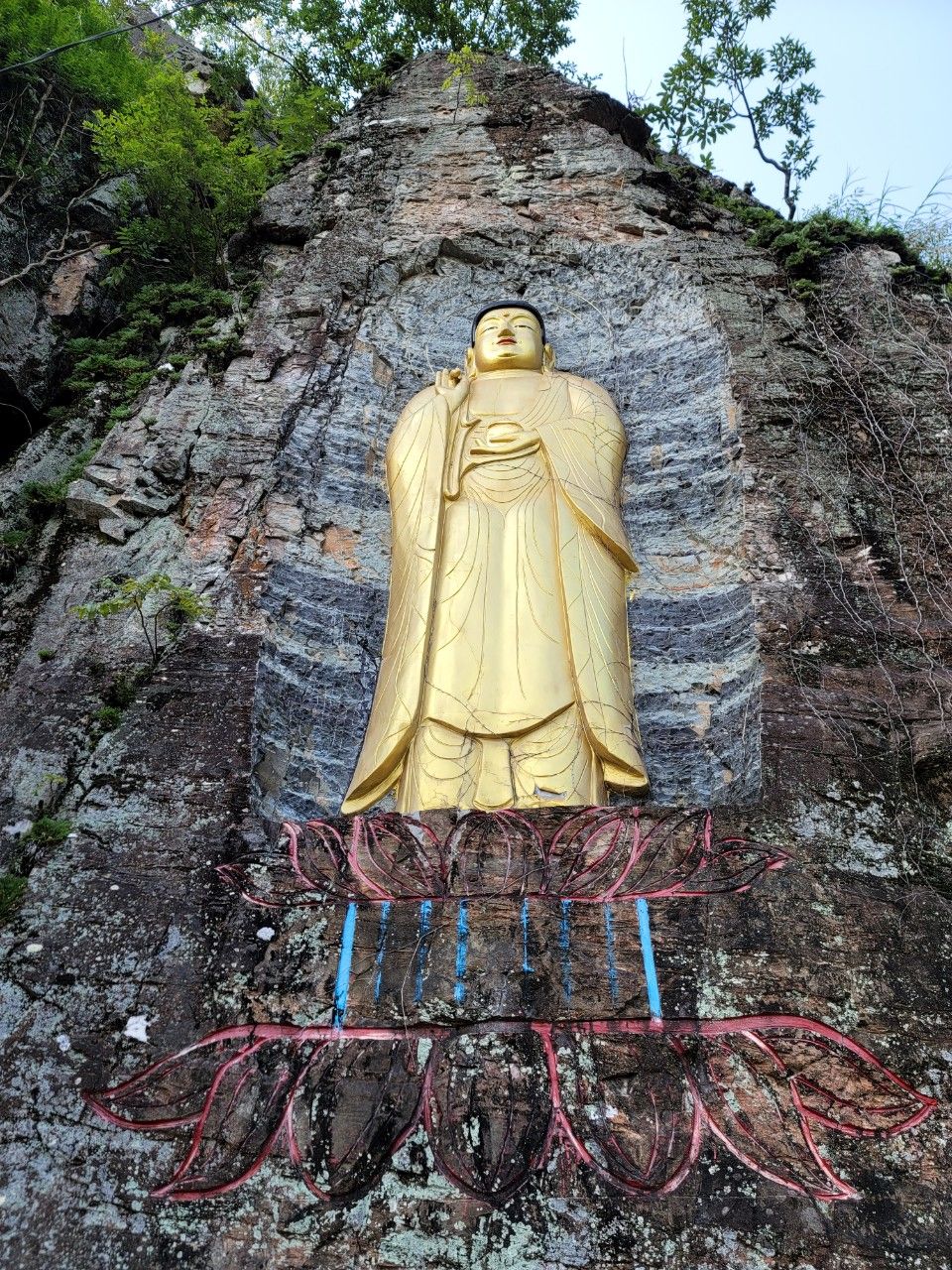 연꽃 위에 서 계신 황금 부처님이 독특해 보였습니다.